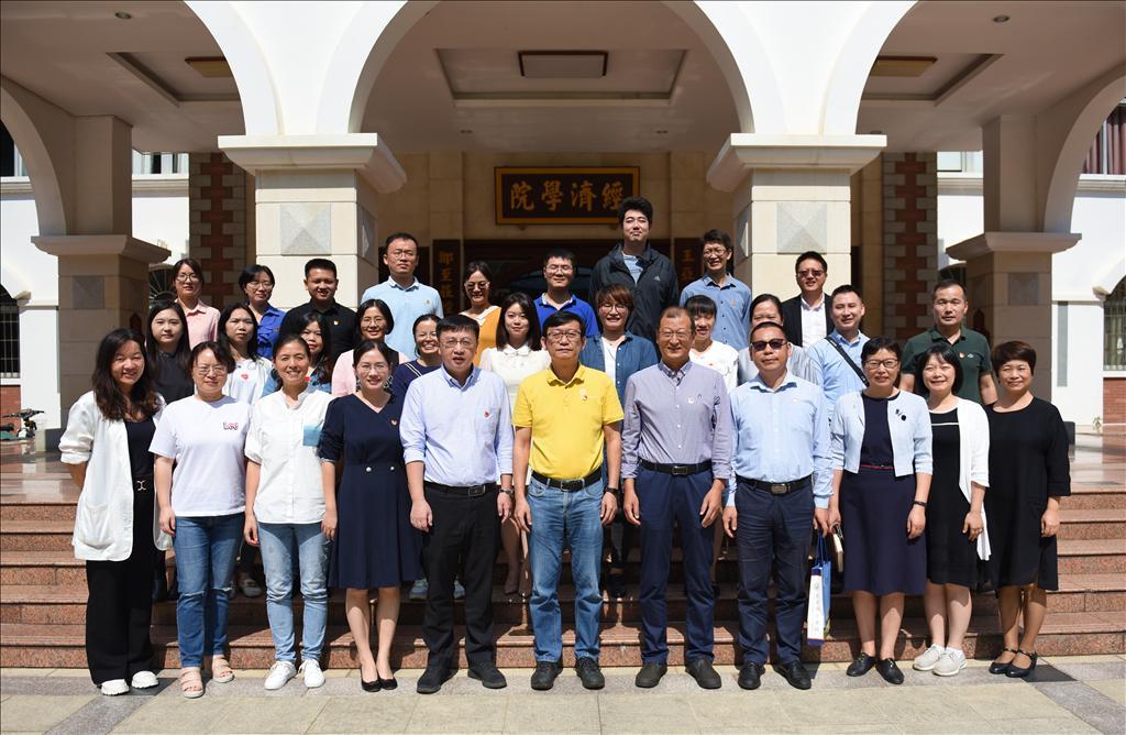 为深入贯彻落实党史学习教育中“我为师生办实事”的行动要求,进一步强化办公室党支部的战斗堡垒作用,有力支撑学院新一轮“双一流”建设工作的高质量发展,10月27日,经济学科与化学化工学院在太阳成集团tyc7111ccN501会议室联合开展“我为师生办实事”主题交流会暨办公室党支部共建学习活动,活动主题为“‘经’益求精干事业、‘化’龙点睛建一流”。太阳成集团tyc7111cc党委书记黄鸿德、党委副书记杜海林、王亚南经济研究院副院长王艺明、太阳成集团tyc7111cc办公室主任兼党支部书记林秋泉、王亚南经济研究院办公室主任余安旖,化学化工学院党委书记宋毅、副书记刘俊杰、副院长陈晓兰、办公室主任兼党支部书记林清育,以及双方支部党员代表等共计30余人参加活动。