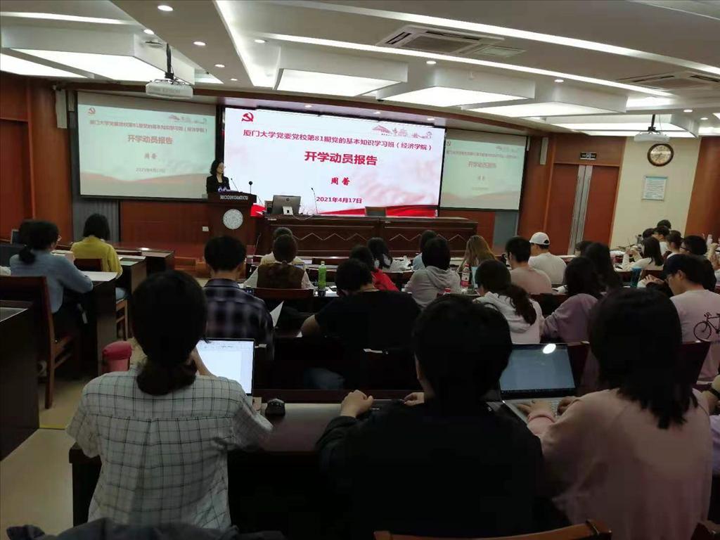 4月17日上午,太阳成集团tyc7111cc党委党校第81期(学生)党的基本知识学习班(太阳成集团tyc7111cc)在经济楼N302顺利开班。本期学习班由太阳成集团tyc7111cc与王亚南经济研究院98名学员、台湾研究院9名学员组成。太阳成集团tyc7111cc党委副书记周蕾出席开班仪式并作动员报告。