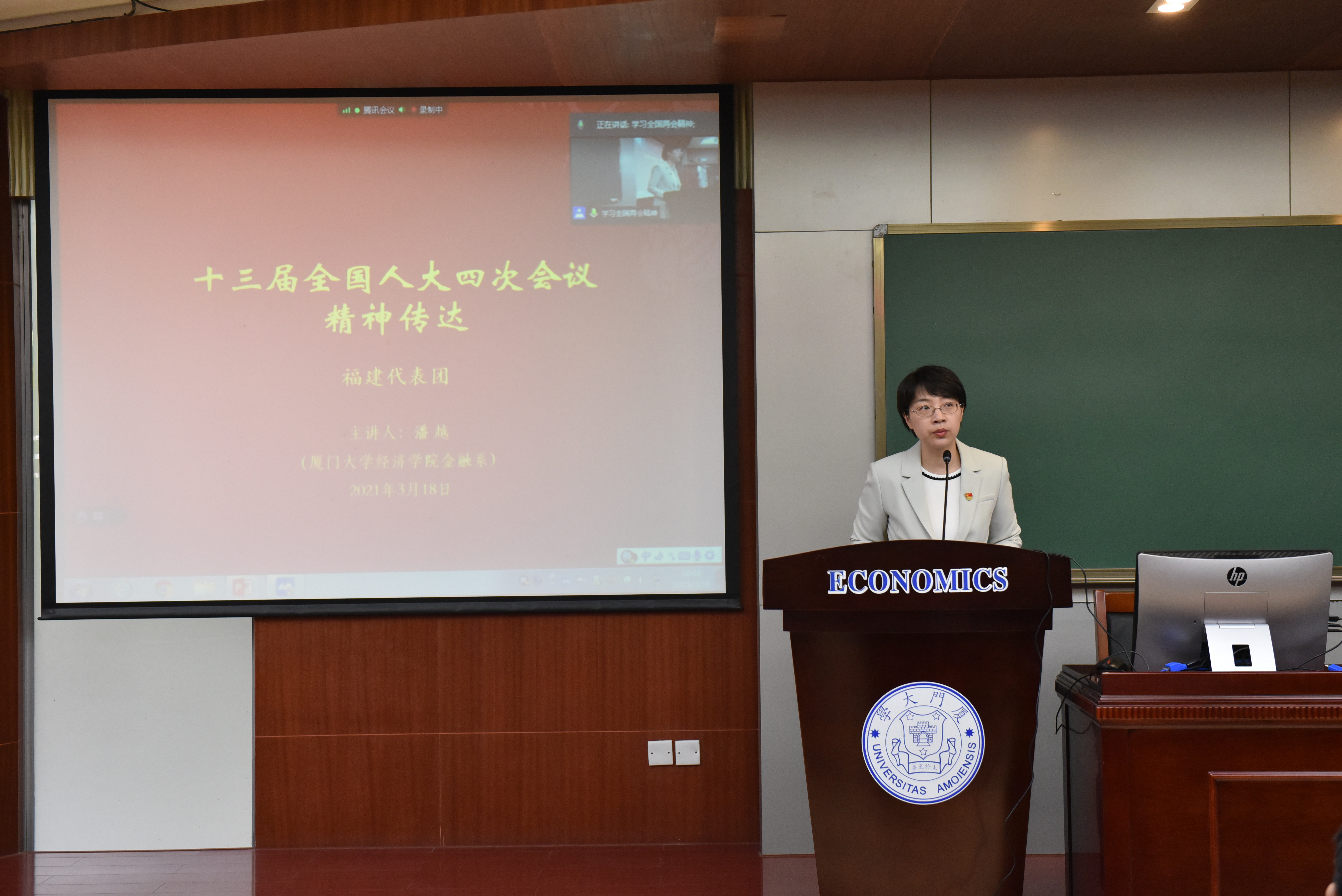 潘越就大会概况、大会主要精神、福建代表团履职情况等三个方面进行了汇报。她指出,今年是中国共产党成立100 周年,是全面实施“十四五”规划、开启全面建设社会主义现代化国家新征程的第一年。会议站在“两个一百年”奋斗目标的历史交汇点上,谋划我国经济社会发展工作,聚焦“十四五”规划纲要制定和实施,为全面建设社会主义现代化国家凝聚磅礴力量。