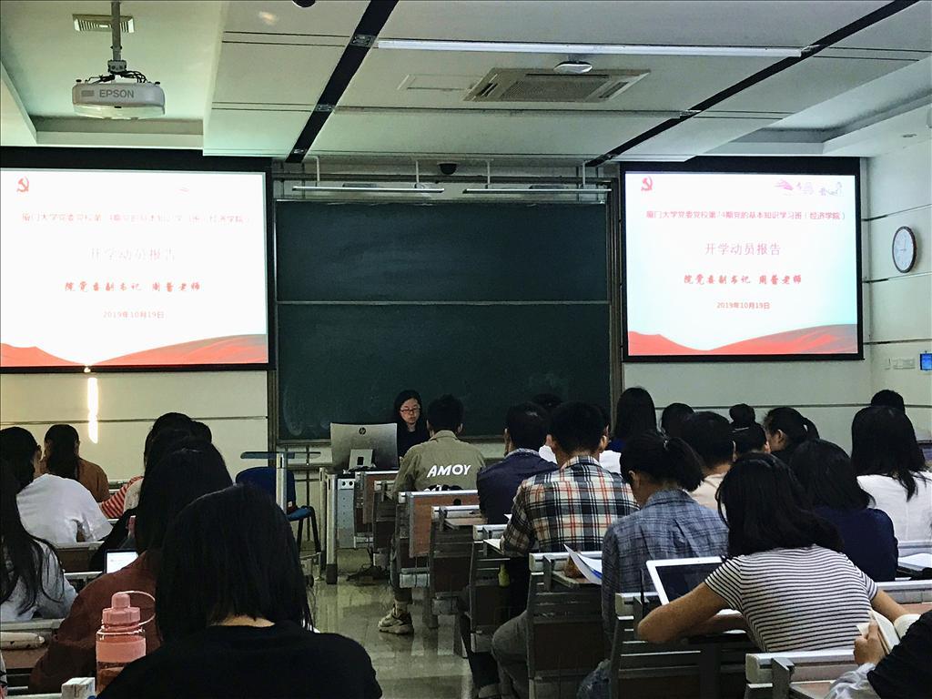 10月19日上午,太阳成集团tyc7111cc党委党校第74期(学生)党的基本知识学习班(太阳成集团tyc7111cc)开班仪式在经济楼D136顺利举行。本期学习班由太阳成集团tyc7111cc与王亚南经济研究院38名学员、台湾研究院4名学员和医学院14名学员组成。太阳成集团tyc7111cc党委副书记周蕾出席开班仪式并作动员报告。