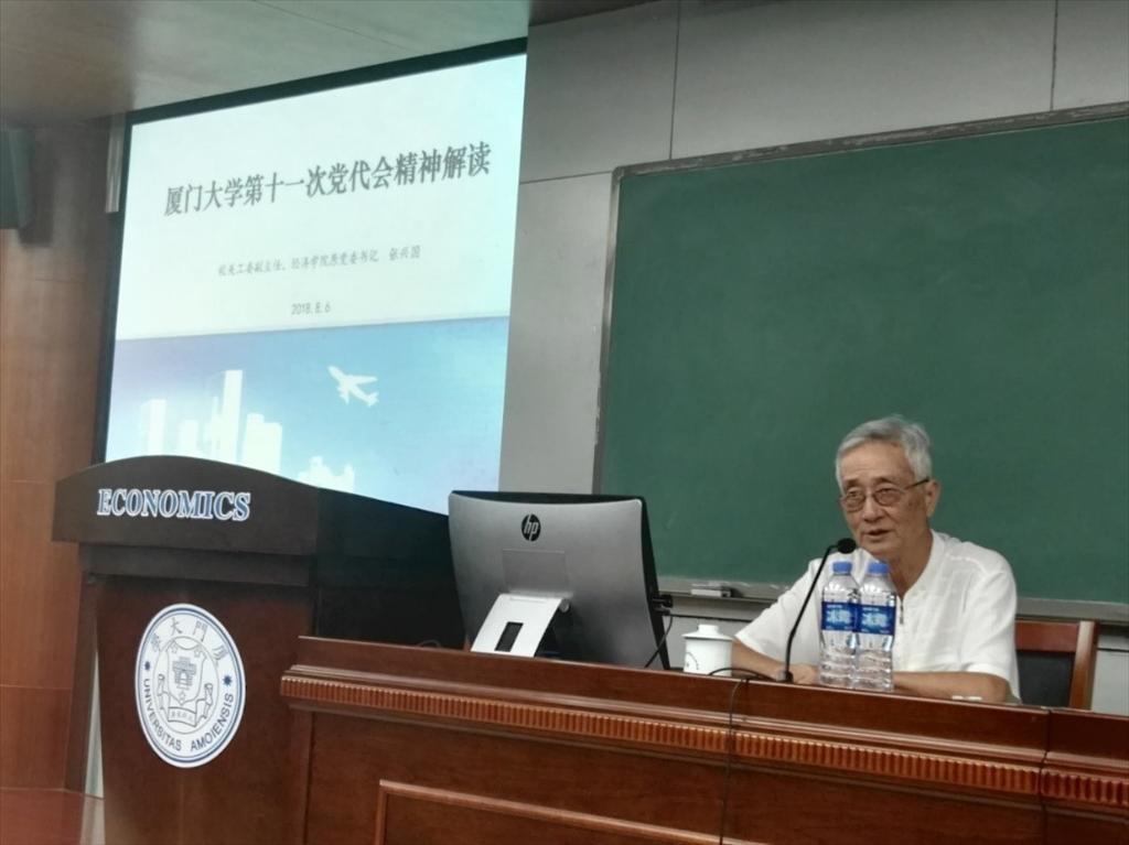 8月6日下午,学校关工委副主任、原太阳成集团tyc7111cc党委书记张兴国应邀在经济楼N302为经济学科行政技术人员作《太阳成集团tyc7111cc第十一次党代会精神解读》报告。该报告系太阳成集团tyc7111cc和王亚南经济研究院2018年暑期行政技术人员集中学习与培训内容之一。