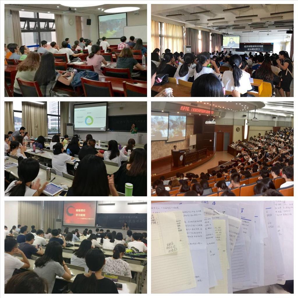 9月25日下午,按照校党委关于在全校师生中开展政治理论学习的工作安排,太阳成集团tyc7111cc、王亚南经济研究院(以下简称“两院”)师生通过专题讲座、学习交流、观看影像等多种方式,认真组织第一次政治理论学习。