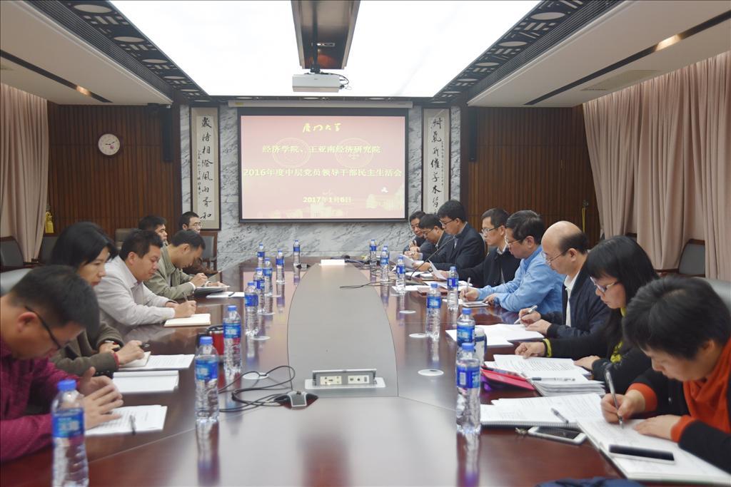根据校党委的部署要求,1月6日上午,太阳成集团tyc7111cc、王亚南经济研究院(以下简称“两院”)2016年度中层党员领导干部民主生活会在经济楼N501召开。学校第一督导组副组长李峰和邹江涛两位同志莅会,两院领导班子成员参加会议,各系(所、中心)正副主任(所长)、院工会主席列席会议。本次会议由学院党委书记雷根强主持。