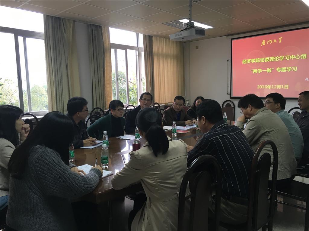 12月1日下午,学院党委在经济楼A318以党委理论学习中心组的形式开展“两学一做”学习教育第四专题的学习研讨。本次学习研讨以“讲政治、守规矩,强监督、重实效”为主题,主要内容是学习《中国共产党廉洁自律准则》、《中国共产党纪律处分条例》等党内法规,学习贯彻十八届六中全会精神,深入学习领会《关于新形势下党内政治生活的若干准则》和《中国共产党党内监督条例》基本要求。学院党委书记雷根强主持会议,学院党委委员、教工党支部书记、团委书记等参加学习研讨。