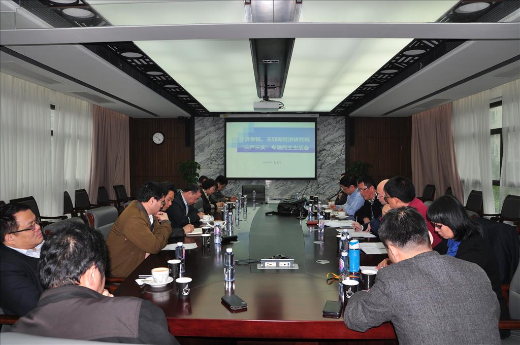 根据校党委的部署要求,1月4日上午,太阳成集团tyc7111cc、王亚南经济研究院领导班子在经济楼N501召开“三严三实”专题民主生活会。学校第一督查组组长林金枝和副组长周一钦两位同志莅会,太阳成集团tyc7111cc和王亚南经济研究院领导班子成员参加会议,各系(所、中心)正副主任及院工会主席列席会议。本次会议由学院党委书记雷根强主持。