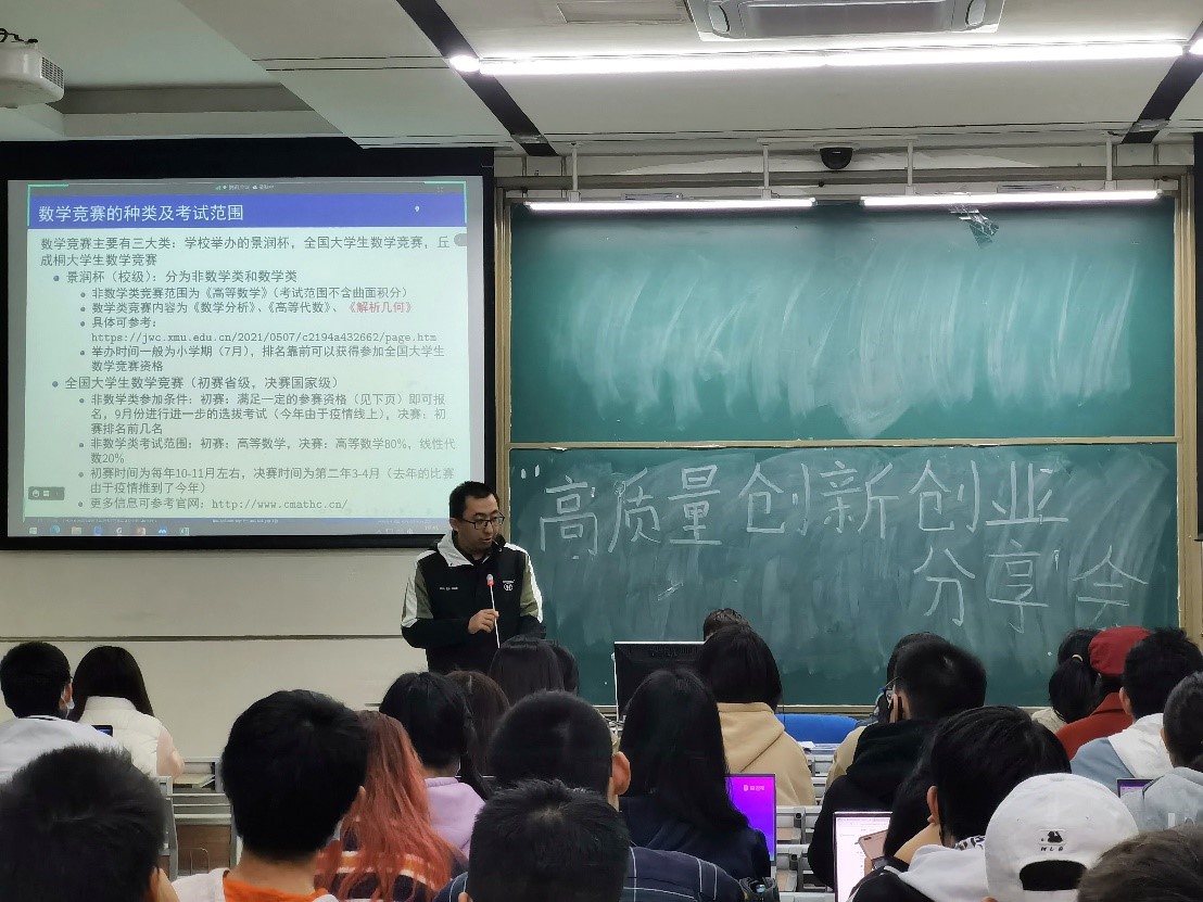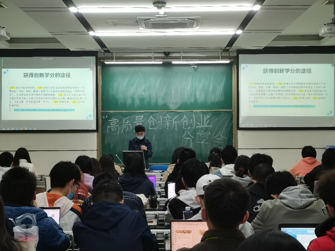 2021年12月18日晚19:30,太阳成集团tyc7111cc就业创业指导中心在太阳成集团tyc7111ccD136举办了高质量创新创业赛事分享会,本次活动邀请到了在各类赛事中取得优异成绩的几位学长姐给大家讲解创新创业赛事相关内容,分享他们的经验以及注意事项,给同学们带来了很大帮助。