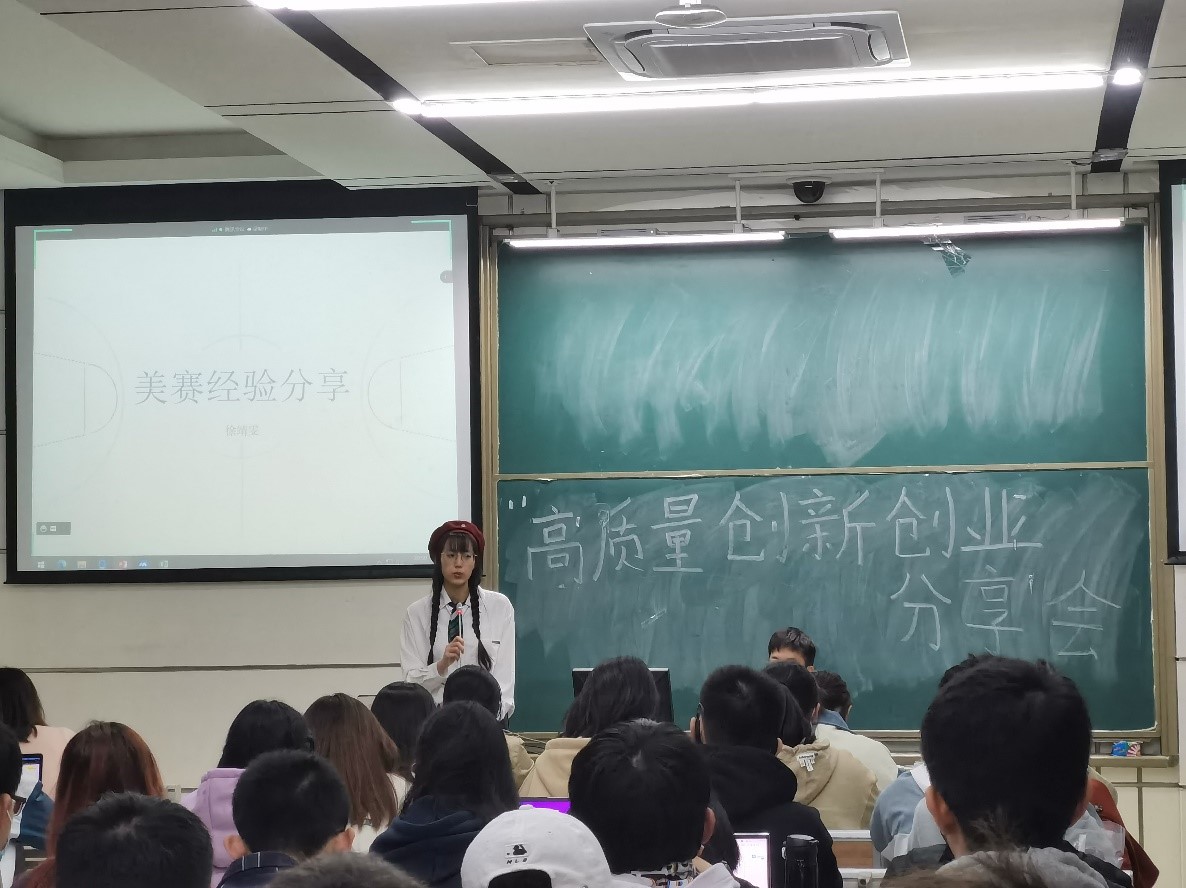 之后,由2018级金融系的徐靖雯学姐分享美赛的相关经验以及从赛前到比赛时的相关注意事项。学姐强调了论文中摘要以及图像的重要性,并且对于数据的结果分析要深入阐述,尝试解释为什么会有这样的结果。这些经验以及建议不仅对于同学们参加美赛帮助很大,而且对于平时的论文写作来说也相当有用。
