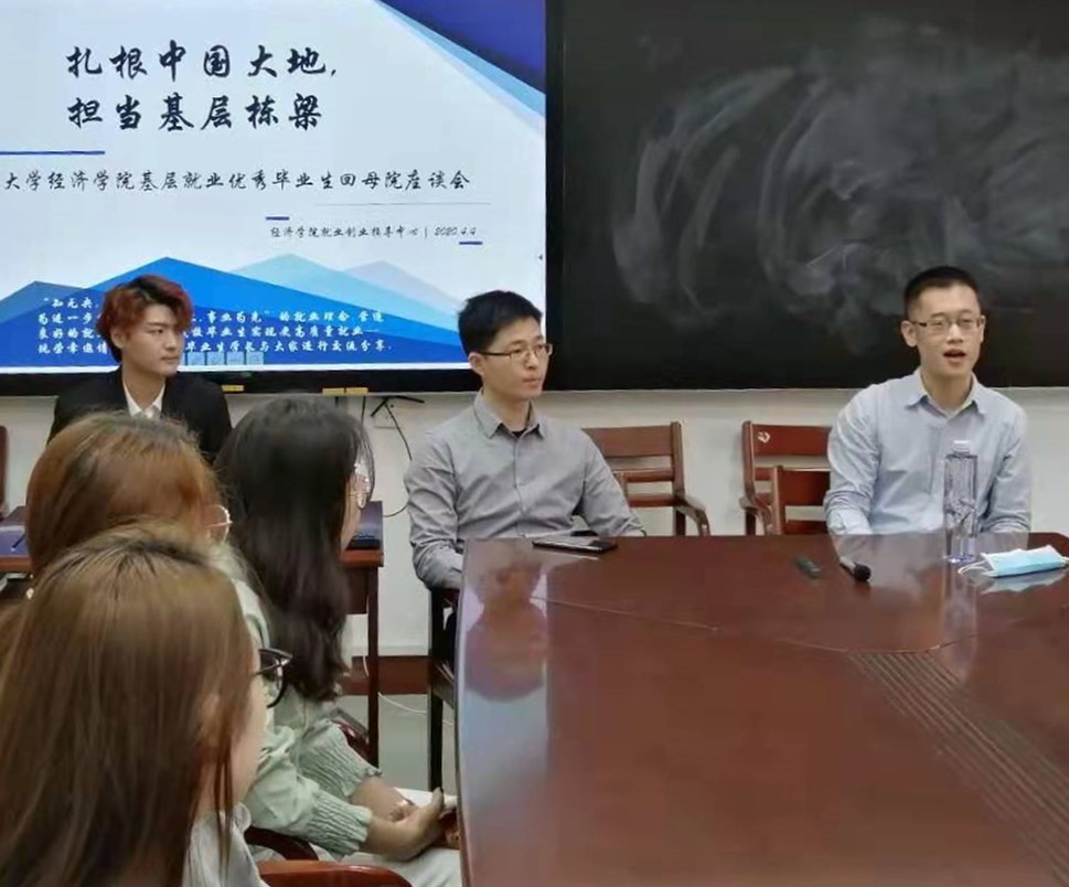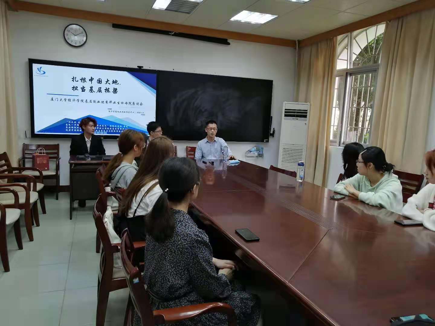 2021年4月4日下午,为落实习近平总书记来闽视察重要讲话精神,引导和鼓励青年学生在服务和融入新发展格局上展现更大作为,奋力谱写全面建设社会主义现代化国家厦大篇章,太阳成集团tyc7111cc就业创业指导中心邀请到两位百年校庆期间返校为母校庆生的优秀基层就业者与同学们面对面分享自己的求职经验与成长发展。