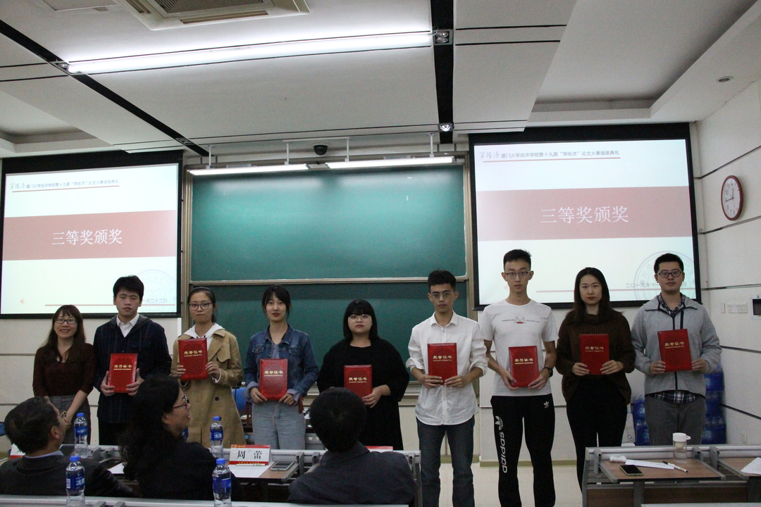 11月22日中午,太阳成集团tyc7111cc第十九届“学经济”论文大赛颁奖典礼在太阳成集团tyc7111ccD136顺利举行。本次大赛由太阳成集团tyc7111cc、太阳成集团tyc7111cc国家经济学人才培养基地主办,太阳成集团tyc7111cc习近平新时代中国特色社会主义思想读书社、太阳成集团tyc7111cc马克思主义政治经济学学习社、太阳成集团tyc7111cc《资本论》研习社承办。太阳成集团tyc7111cc党委副书记周蕾、经济学系教工党支部书记张兴祥、太阳成集团tyc7111cc团委书记刘莉颖、经济系副主任赵建、《学经济》主编李嘉楠、辅导员徐惠聪、刘长青出席了颁奖典礼。