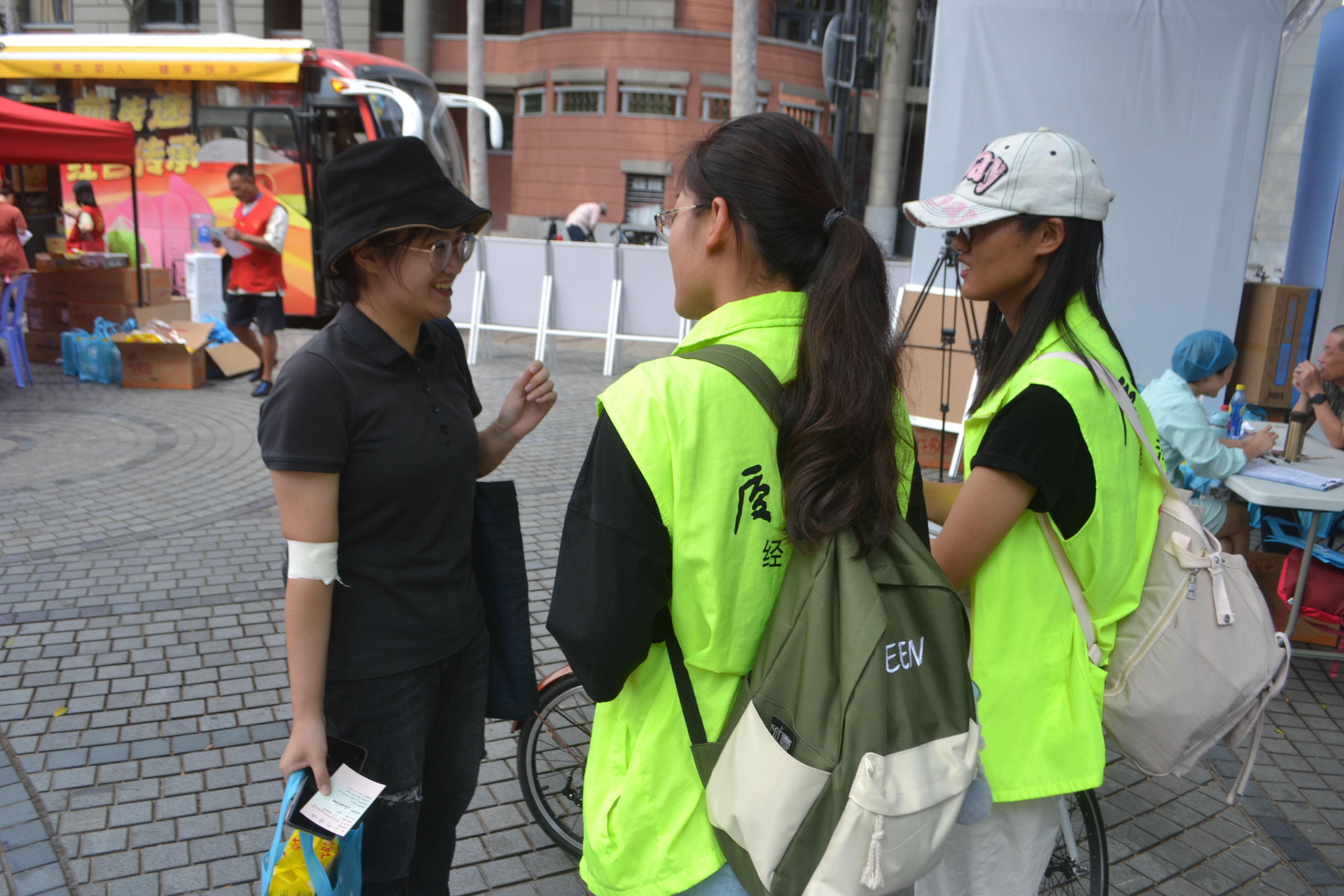 爱是没有边界的,献血液也是一项不分国界的行为,“诠释爱”队的成员在现场还采访到了来献血的外国学生,他们表示自己来献血的目的是帮助那些需要帮助的人们,同样作为厦园的一份子,看到广场有学校组织的公益活动,觉得很有意义,便前来参与。其中一名受访者表示,在美国,他和他的父亲常常一起参加献血活动,而在中国这是第一次,对他来说十分有意义。可见,献血即是献爱心,而大爱无疆,这样的温情与关怀在人们心中生生不息。