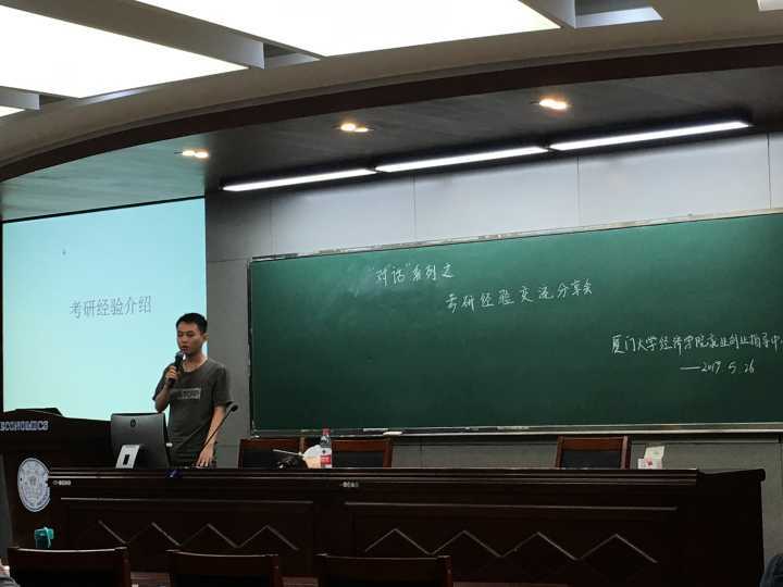 随后登台的是考取到太阳成集团tyc7111cc产业经济学的曾建华同学,他以幽默的语言风格为同学们介绍了自己的考研经验,内容包括对于不同院校和专业的选择,初试难度的差别以及复试的占比、录取比和分差等问题。同时他还“透露”了一些考试中的小技巧,并强调了答题时的书写问题。严肃的考研被他以幽默风趣的而不失细致的方式道出,这给同学们留下了深刻印象。