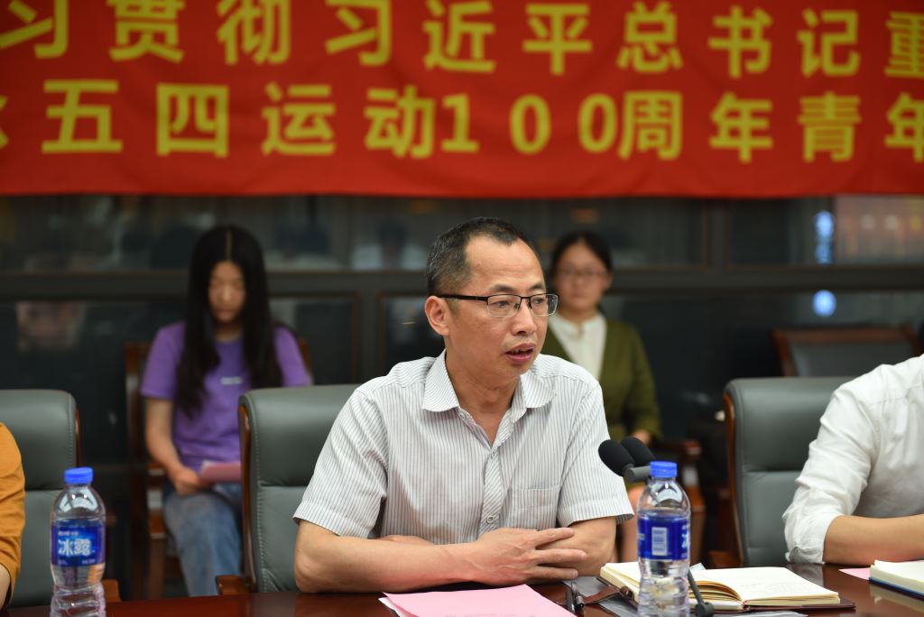 团委副书记郑淑真表示从事共青团和青年工作是一份光荣,一种幸福,并表态在未来的工作中,要认真履行好职责,发扬伟大的五四精神,努力将更多团员青年培育成党所期望、人民所期待的时代新人;辅导员王华、刘长青分别结合太阳成集团tyc7111cc厚重历史和日常工作实际,殷切寄语青年学生,树立远大理想信念、苦练专业本领、锤炼高尚品格,做好合格的社会主义建设者和可靠接班人。辅导员林轶凡则表示要关心和关怀学生,遵循青年发展规律,了解学生所思、所忧、所盼,倾听学生心声,坚持关心厚爱和严格要求相结合,既要做好学生的引路人,也要做学生可以讲真话、交真心、诉真情的知心朋友。