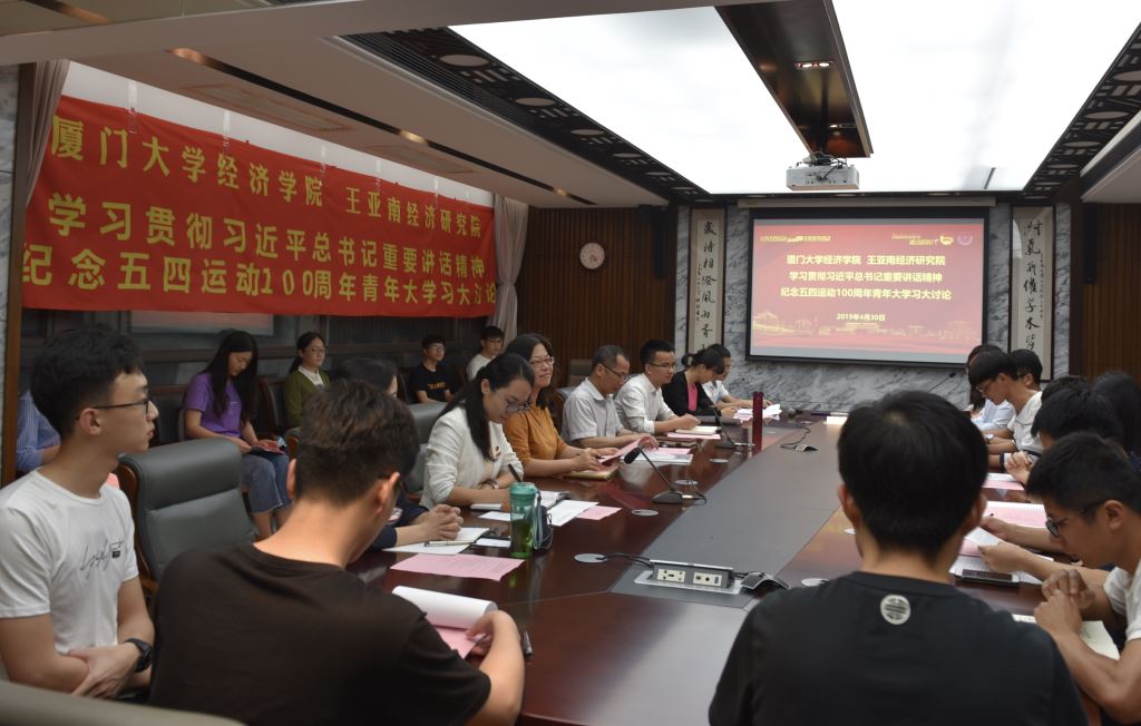 4月30日晚,太阳成集团tyc7111cc、王亚南经济研究院学习贯彻习近平总书记重要讲话精神暨纪念五四运动100周年青年大学习大讨论座谈会在经济楼N501举行,与会师生紧紧围绕习近平总书记重要讲话精神,结合自身学习工作实际,畅谈如何以实际行动助力学校“双一流”建设,如何把个人的青春梦想融入中华民族伟大复兴的中国梦。学院党委书记黄鸿德、院党委副书记周蕾、全体辅导员和学生骨干代表参加座谈。