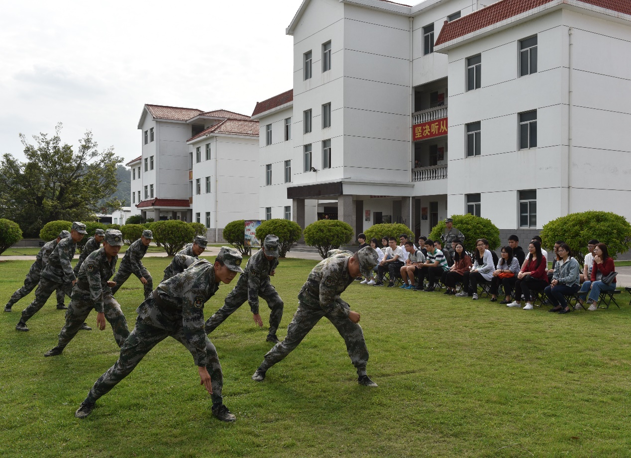随后,官兵们在训练场为同学们带来了精彩的刺杀操、匕首操和军体拳表演。整齐有序的动作和铿锵有力的呐喊声展现了人民军队的风采。官兵们精彩的表演燃起了青年学子拥军爱军的澎湃热情。