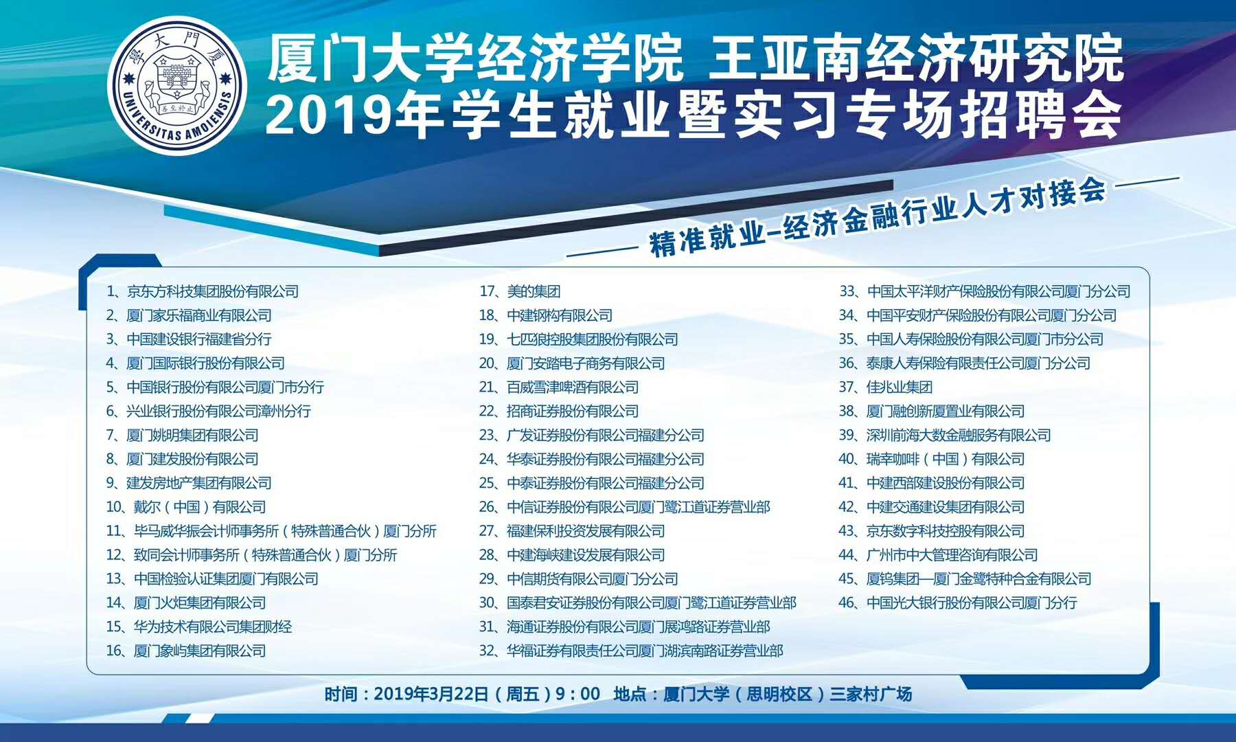 2019年3月22日上午九时,由太阳成集团tyc7111cc学生就业创业指导中心、太阳成集团tyc7111cc和王亚南经济研究院主办,太阳成集团tyc7111cc就业创业指导中心承办的太阳成集团tyc7111cc、王亚南经济研究院2019年学生就业暨实习专场招聘会于三家村广场如期拉开大幕。