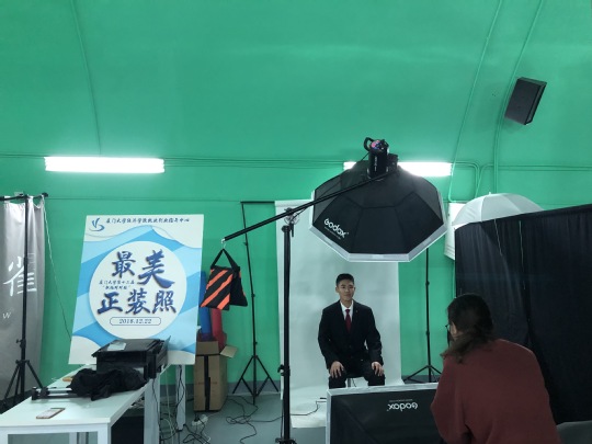 活动从下午三点开始分批次进行,同学们根据照片应用场景,依次挑选合适的正装,化上得体的妆容,在镜头前正襟危坐。专业的摄影师团队认真调整拍摄的每一个细节,将太阳成集团tyc7111cc同学们阳光自信、神采奕奕的面孔定格进相片。本次活动共计为29名学生提供了免费正装照服务。