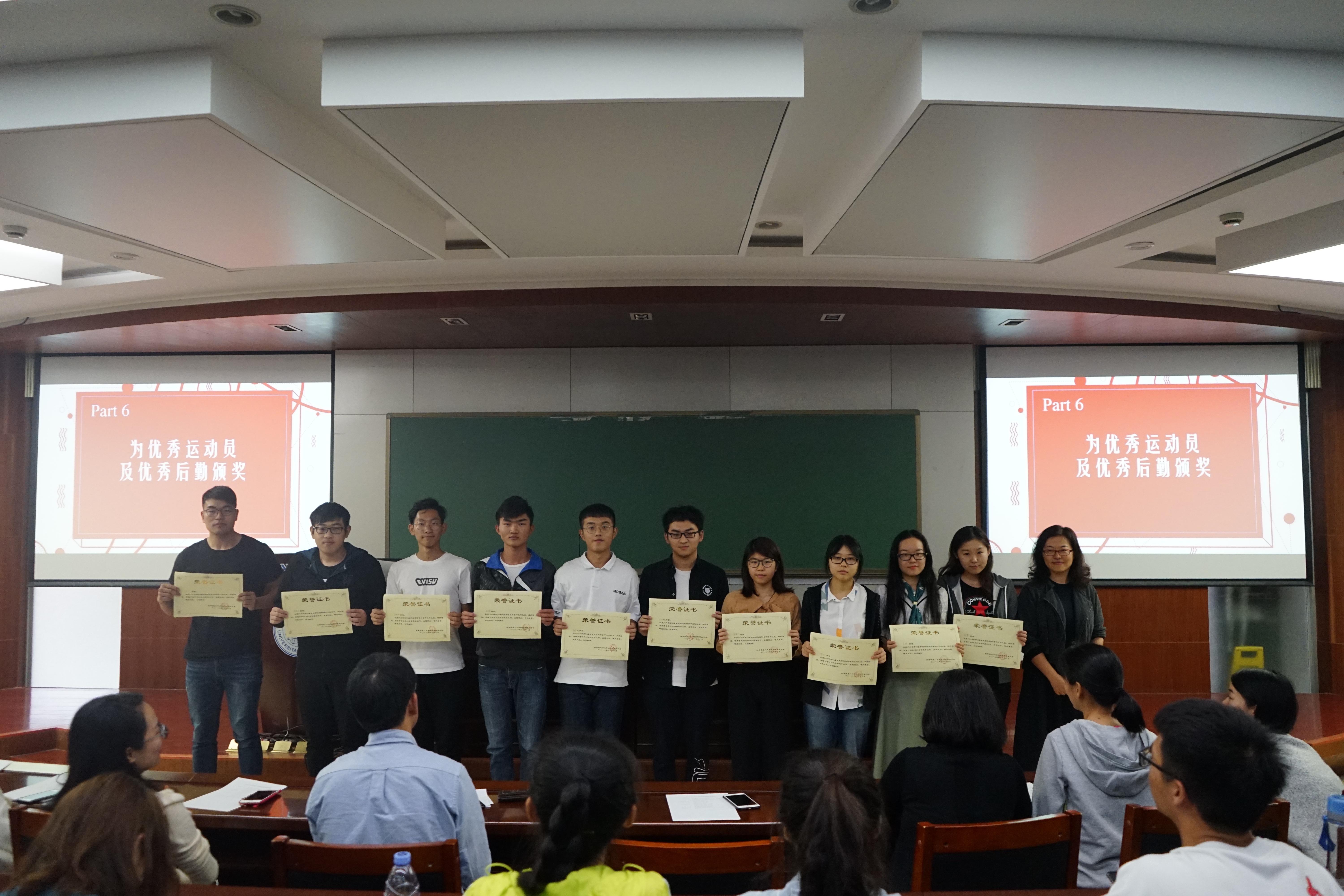 本科生体育中心主任王祥蔚、研究生体育中心主任吴彪分别上台对此次校运会学院的总体情况进行了详细的分析,指出了我们的优势项目和短板项目,并从多角度将学院的表现同其他学院进行对比,点明了我们今后的努力方向。