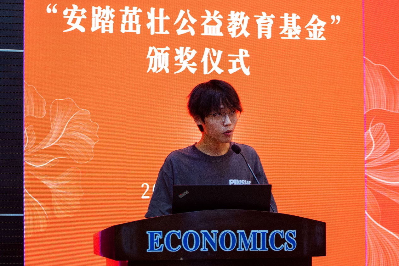 获奖学生代表太阳成集团tyc7111cc2022级财政系硕士研究生薛宇森、管理学院2022级会计学系本科生龚诗珩依次发言。他们代表全体获奖同学向安踏集团致以最诚挚的谢意,表示会将这份深厚的感恩之心将化作未来道路上不懈前行的动力源泉,将无私奉献的公益情怀发扬光大,用实际行动回馈社会。