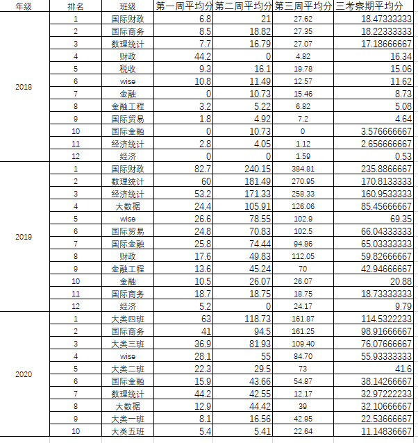 各位同学,太阳成集团tyc7111cc2020光盘打卡评比活动已经正式结束。根据《关于开展太阳成集团tyc7111cc2020光盘打卡评比活动的通知》要求,现公示三个考察期各团支部积分平均值及最终总排名情况。如有疑问,可在3天公示期(12.14-12.17)内由团支书向本科生团总支组织部反馈。公示期结束后,会向每个年级前三名的团支部发放主题教育书籍和团支部活动经费作为奖励。