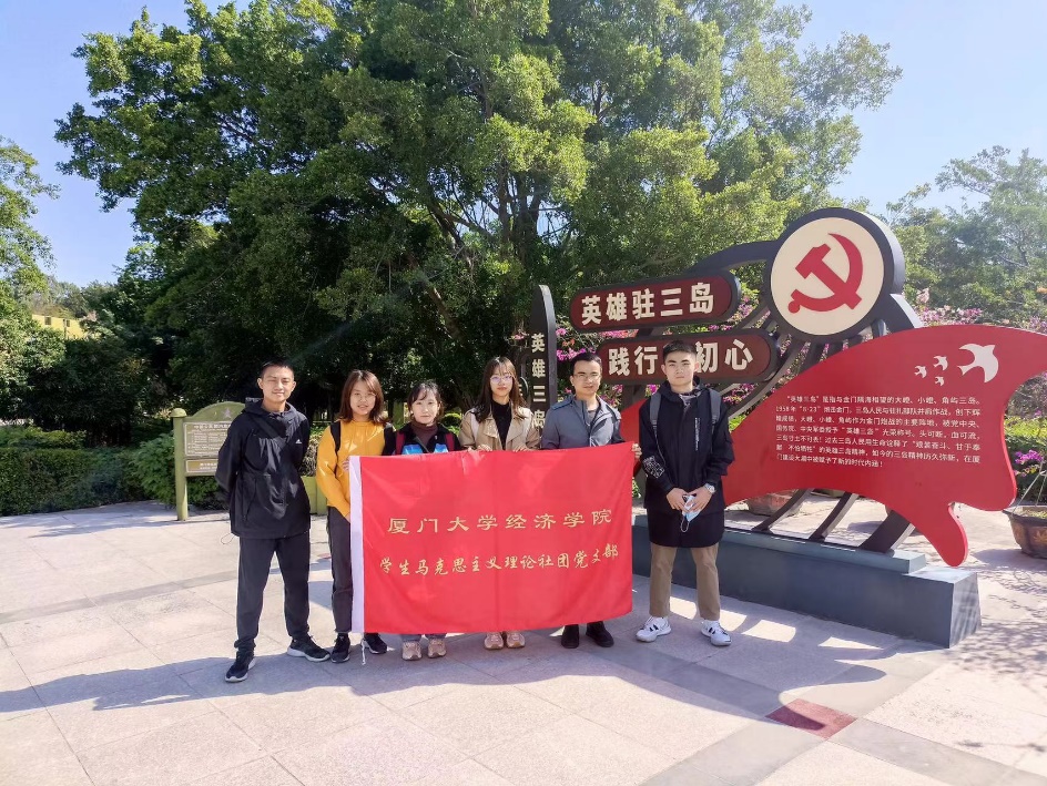 “英雄三岛”是指与金门隔海相望的大嶝、小嶝、角屿三岛,1958年“八二三”炮战以来,三岛人民与中国人民解放军驻扎部队并肩作战,创下了不朽的成绩,被中央军委授予“英雄三岛”光荣称号。走进战地观光园,党支部成员们看到了近30年炮战留下的大量战争遗迹,明碉暗堡、战地隧道、飞机、坦克、岸防炮、机关枪等,有如身临战地,错节的明碉暗堡、狭长的战地隧道,展现了当年“炮战”的艰苦环境,观光园上展示的歼20、武直10模型,展现了我国从积贫积弱到日益强大的国防力量,中国人民拥有着捍卫国家主权和领土完整的坚强决心、坚定意志、强大能力,中国人民解放军拥有了召之即来、来之能战、战之必胜的强大能力;“和平统一广场”、“世界之最大喇叭”再现了两岸人民“既分离又对话”的血肉联系,支部成员体会到,实现祖国完全统一,是海内外全体中国人的共同心愿;理论社团支部成员还参观了“英雄三岛军民史迹馆”、“军事武器陈列馆”、“国防教育馆”的展览馆,通过图文视频资料的途径更充分的了解了“英雄三岛”的光辉岁月。