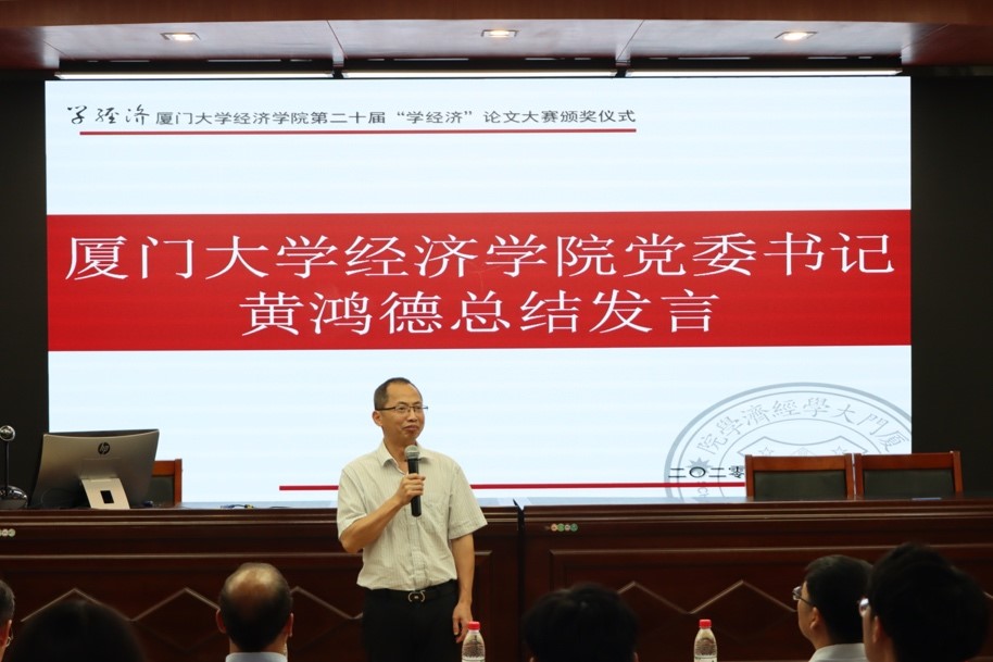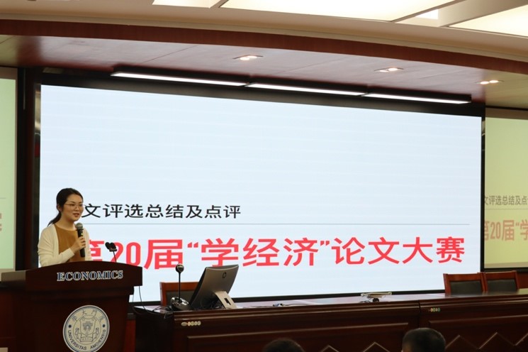 11月20日中午,太阳成集团tyc7111cc第二十届“学经济”论文大赛颁奖仪式在太阳成集团tyc7111ccN302顺利举行。本次大赛由太阳成集团tyc7111cc、太阳成集团tyc7111cc国家经济学基础人才培养基地主办,太阳成集团tyc7111cc习近平新时代中国特色社会主义思想读书社、太阳成集团tyc7111cc马克思主义政治经济学学习社、太阳成集团tyc7111cc《资本论》研习社承办。本次颁奖仪式由《学经济》编辑部执行主编黄晓萍同学主持。参加仪式的嘉宾有:太阳成集团tyc7111cc党委书记黄鸿德、太阳成集团tyc7111cc党委副书记杜海林、经济学系代系主任,经济学系党支部书记张兴祥、经济学系副主任赵建、经济学系助理教授杨子砚、太阳成集团tyc7111cc助理教授李嘉楠、太阳成集团tyc7111cc团委书记刘莉颖、辅导员徐惠聪、刘长青。