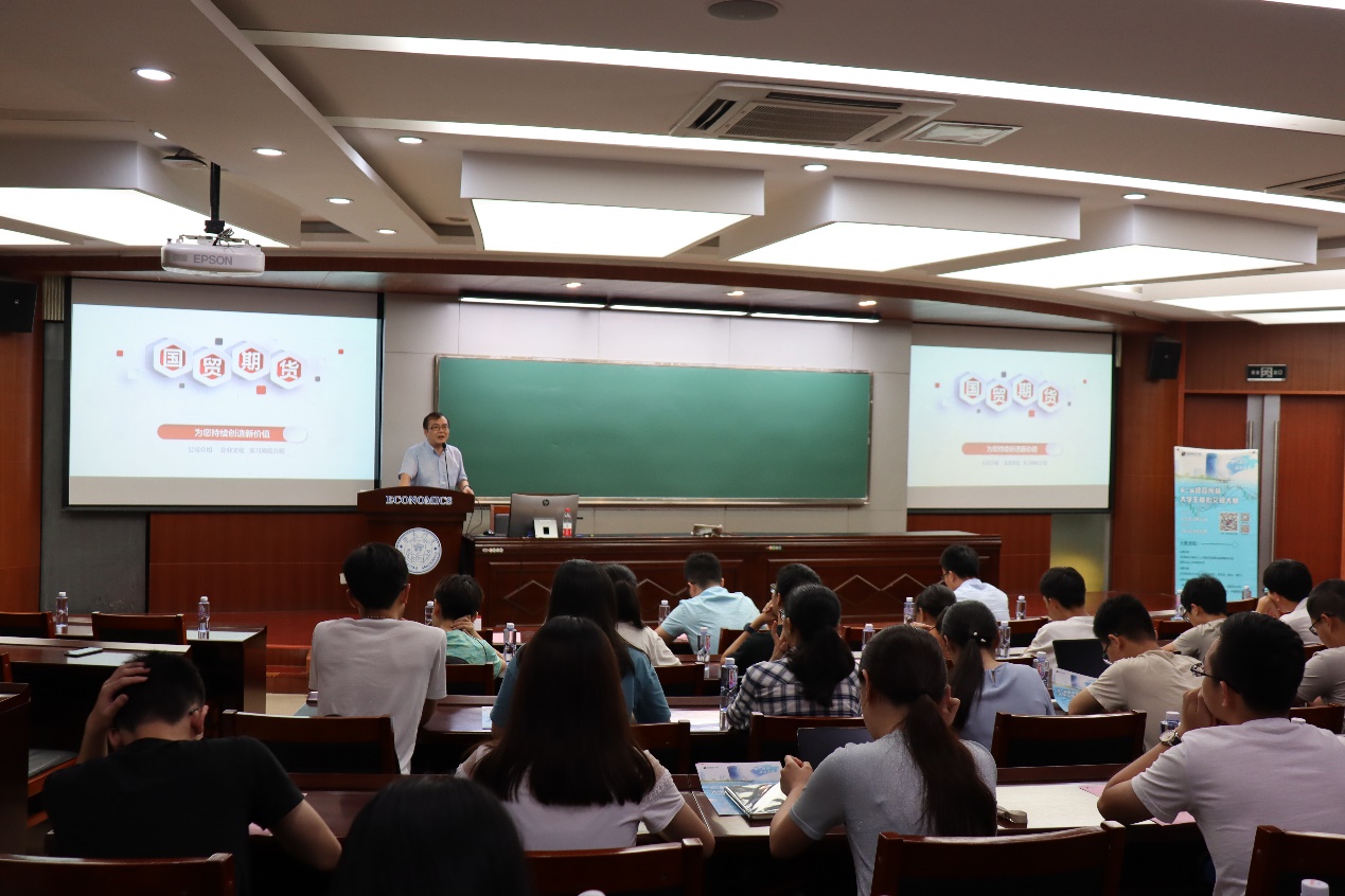 接着,国贸期货有限公司人力资源部阮辉经理介绍了国贸期货有限公司以及国贸期货为本次大赛所提供的实习岗位的信息。他从一个职场人的角度,分析参赛利弊,号召同学们积极参赛。