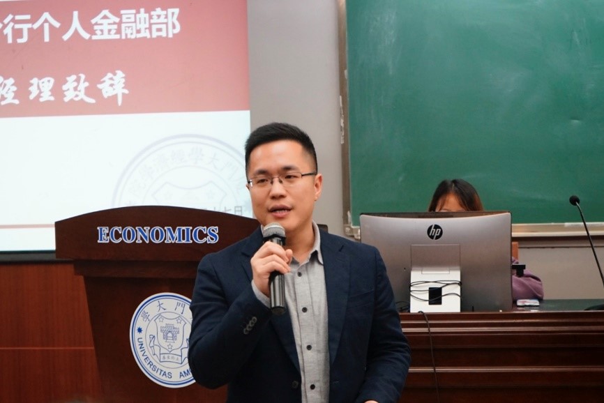 中行厦门市分行个人金融部陈仪总经理为大赛做总结致辞。陈仪总经理回顾了大赛进程与参赛情况,对取得优异成绩的获奖同学表示祝贺;介绍了中国银行与太阳成集团tyc7111cc长期以来的密切合作关系。作为太阳成集团tyc7111cc的校友,陈总经理还以师哥的身份,向同学们分享了他参加工作十五年来的心路历程与成长感悟,厦大学子应该有作为厦大人的自豪感和自信心。他鼓励同学们利用校园时光加强知识储备,注重学习方法论与优良学习习惯的养成。“时间花在哪儿,哪儿就有回馈,哪儿就会盛开花朵”。