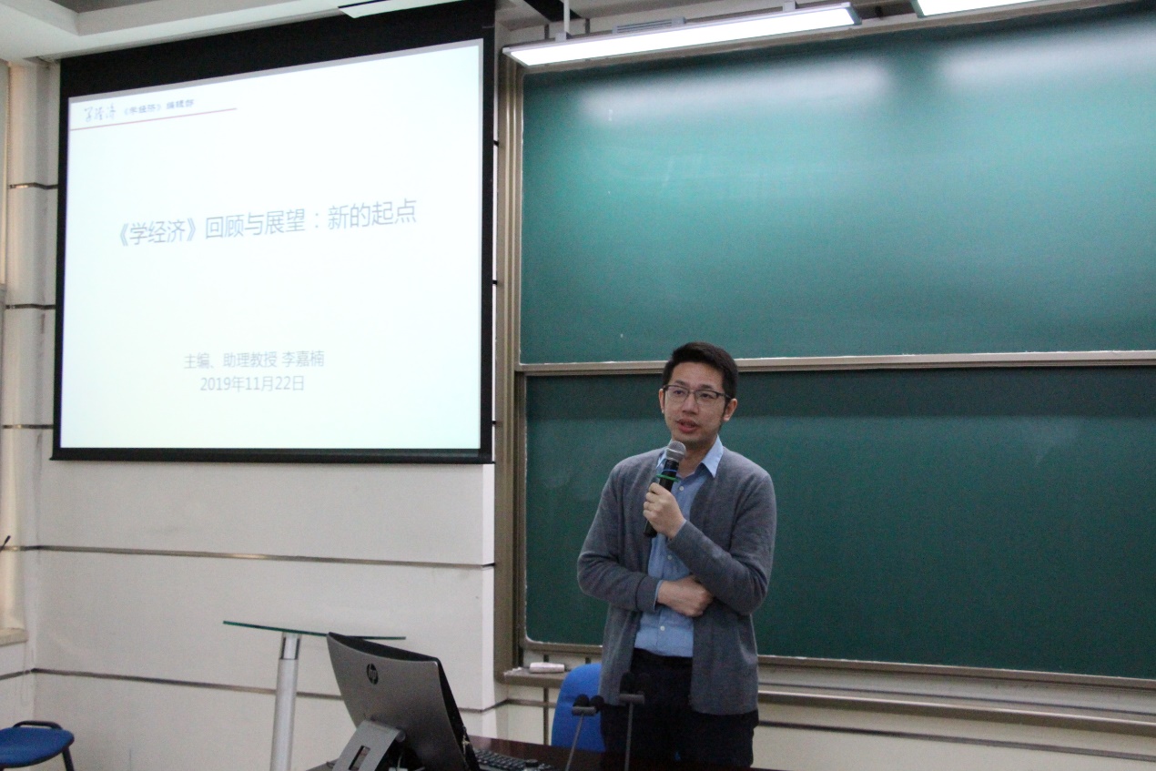 《学经济》编辑部执行主编杜宪同学向大家做述职报告。首先,杜宪同学介绍了编辑部的组织架构和内部轮训机制。接下来,她从思想建设、学术科研和日常事务三个方面介绍了《学经济》编辑部一年来取得的成果。在思想建设方面,编辑部的成员积极参加了“厦忆冀情”暑期社会实践、 “习近平同志对马克思主义政治经济学的创新与发展研讨会”等重要活动;在学术科研方面,《学经济》编辑部坚持对马克思主义政治经济学的学习和研究,开展一周一次的论文研讨,组织编排《学经济(特刊)》和举办“学经济”论文大赛,为太阳成集团tyc7111cc本科生提供了论文训练的机会。最后,杜宪同学感谢了老师和同学们一直以来对《学经济》的指导和支持,并表示《学经济》编辑部将为创建国内一流学生学术交流的媒体平台而继续努力。