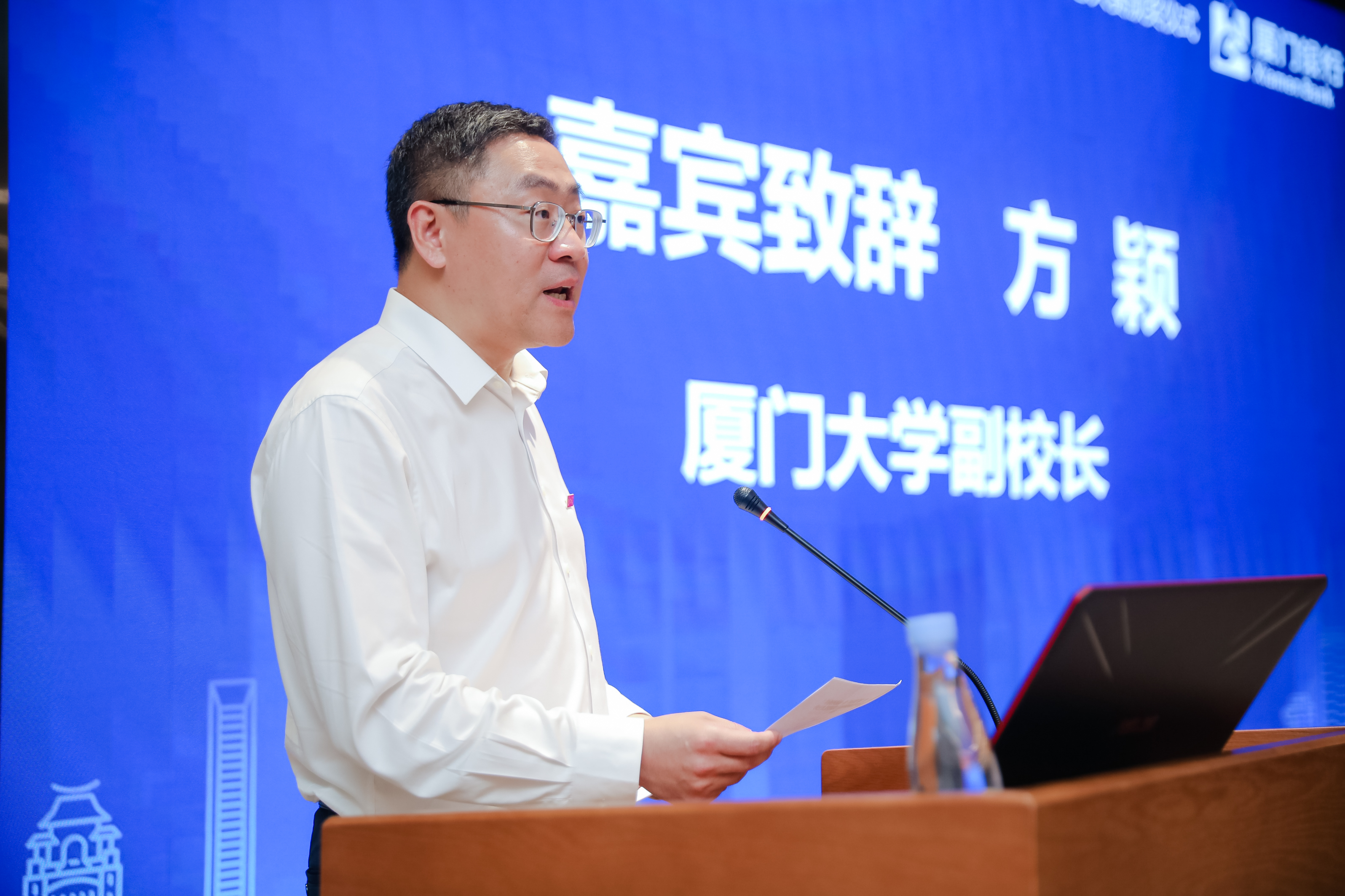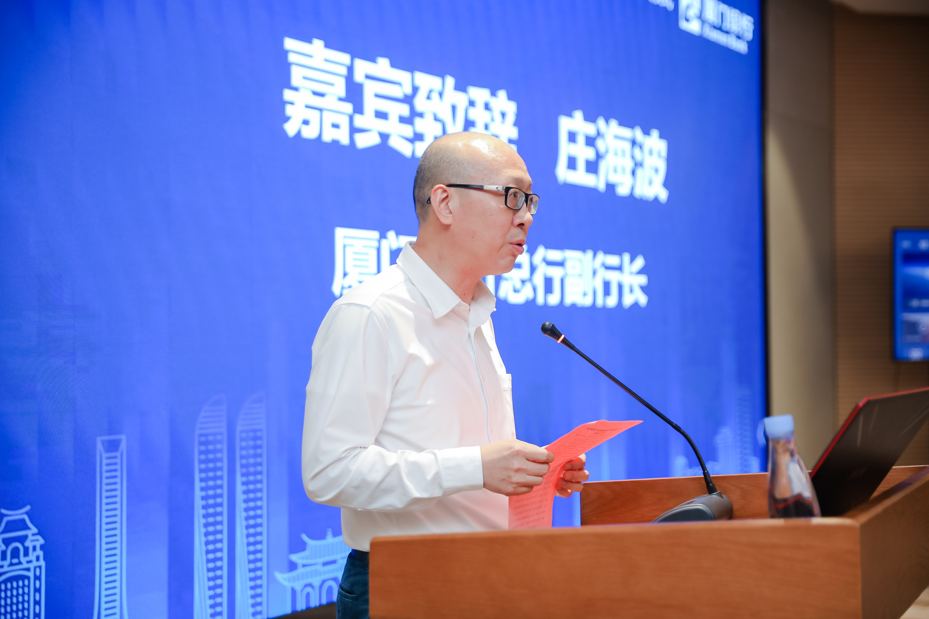 厦门银行总行副行长庄海波先生在颁奖仪式上致辞。他强调,作为大陆首家具有台资背景的城市商业银行,厦门银行一直致力于融汇两岸,在两岸金融合作方面不断先行先试,持续打造两岸特色金融产品,积极推进两岸文化交流。厦门银行将持续关注和支持两岸青年交流,通过发挥对台区位优势和自身台资背景特色,为台湾青年在大陆的学习、创业、工作提供便利,为两岸青年交流平台建设添砖加瓦。