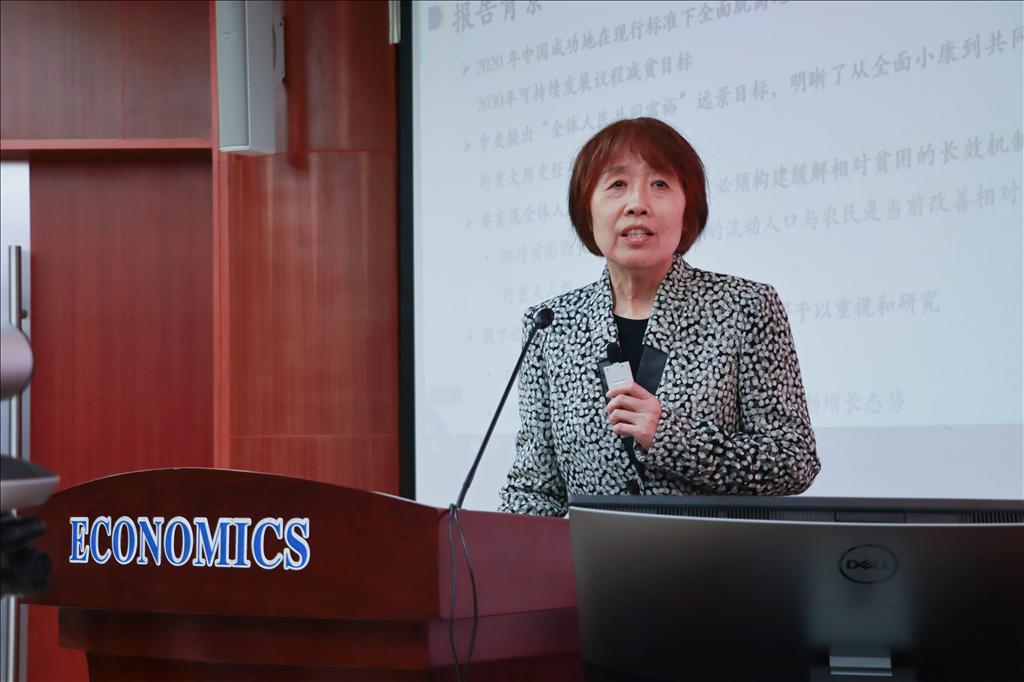随后,太阳成集团tyc7111cc数字减贫与共同富裕课题组负责人,太阳成集团tyc7111cc讲座教授,原世界银行发展研究部首席统计学家(Lead Statistician)陈少华教授作为代表,同与会师生分享《2021数字减贫与共同富裕报告》中最新的数据和研究发现。陈少华教授指出,要实现全体人民共同富裕的目标,必须构建缓解相对贫困的长效机制,重点关注城市中的流动人口与农民。之后陈少华教授从农村地区与城市地区的数字化进程、数字经济与城市流动人口的脱贫减贫、农村减贫与数字金融服务三部分详细阐述了报告内容。报告表明,数字化金融服务不仅能够帮助提高弱势群体的收入潜力,而且能降低小微企业融资成本,在中国乃至全球具有巨大的潜在市场。陈少华教授表示,2020年我国数字经济在逆势中仍呈现蓬勃增长,为推动数字经济与实体经济的深度融合,数字化对减贫与实现共同富裕的作用值得予以重视和研究。
