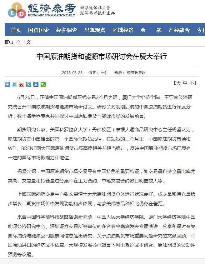 早在研讨会开始前,新浪网、搜狐网媒体等进行了预告报道,在准备各自报道角度与广度的同时,已将诸多媒体的“目光”吸引聚焦到此次国内第一个以中国原油期货为主题的研讨会。