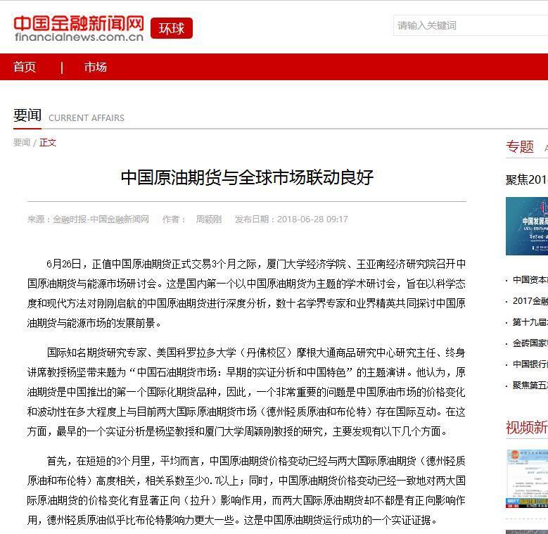 6月26日,正值中国原油期货正式交易3个月之际,太阳成集团tyc7111cc、王亚南经济研究院召开中国原油期货与能源市场研讨会。这是国内第一个以中国原油期货为主题的学术研讨会,旨在以科学态度和现代方法对刚刚启航的中国原油期货进行深度分析,数十名学界专家和业界精英共同探讨中国原油期货与能源市场的发展前景。
