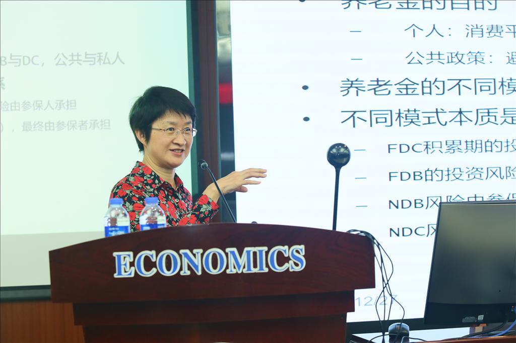 26日下午,东北师范大学郭建华教授,中国科学技术大学张伟平教授,东北财经大学王维国教授先后带来题为“Learning mixed latent tree models”、“Learning block structures in U-statistic based matrices”、“老龄化、劳动份额与收入不平等”的报告。27日,中国人民大学王晓军教授,山东大学陈增敬教授分别带来题为“老龄化、长寿与养老金平衡”、“A central limit theorem for sets of probability measures”的报告。