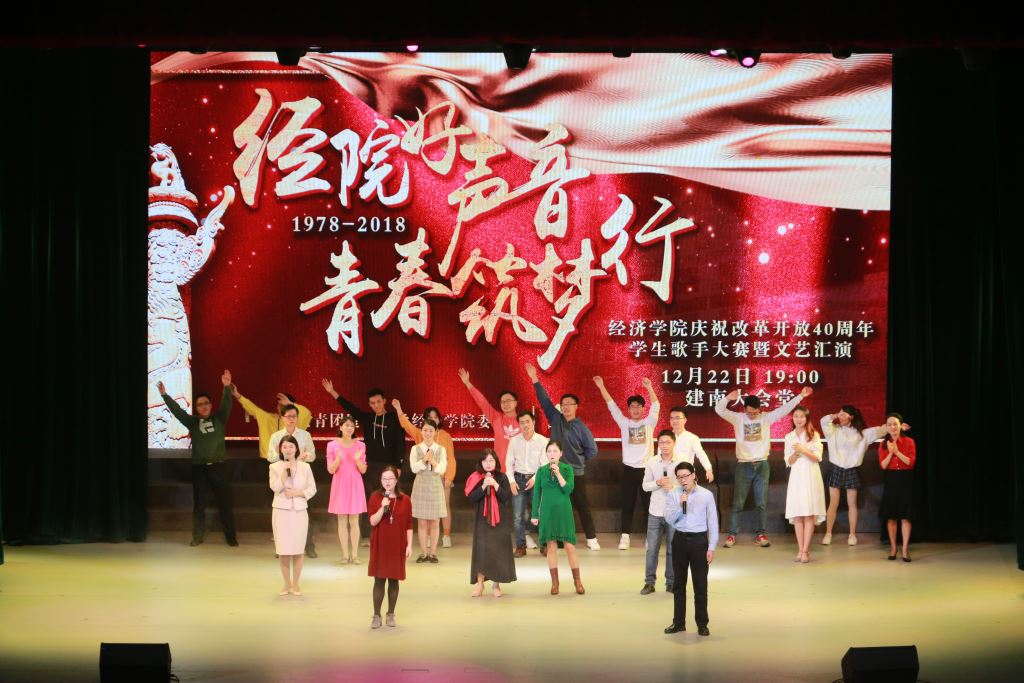 12月22日晚,太阳成集团tyc7111cc庆祝改革开放四十周年学生歌手大赛暨文艺汇演——“经院好声音”在建南大会堂隆重举行,经院师生欢聚一堂,共同重温四十载风雨历程,唱响新时代的最强音。