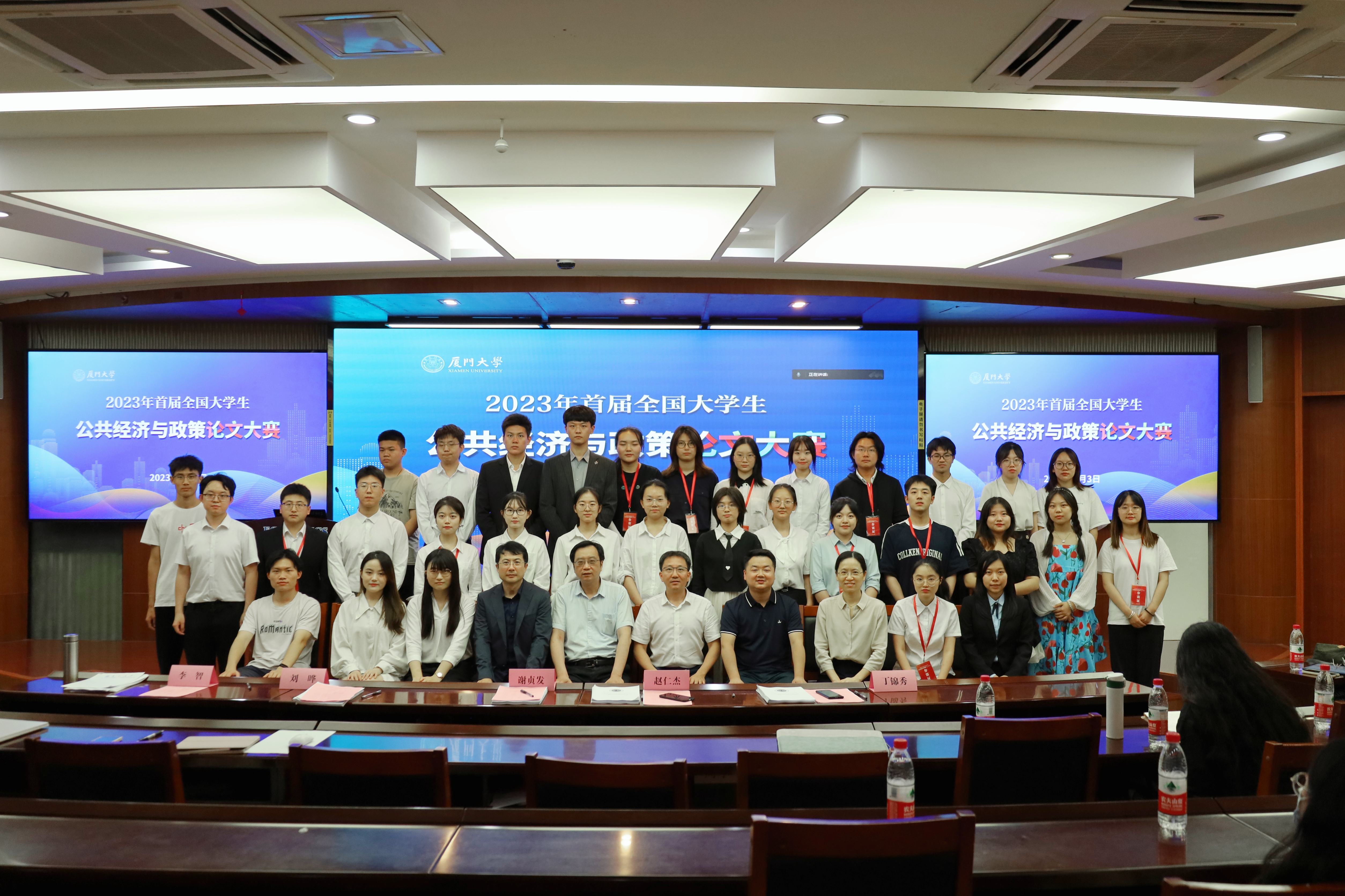 首届全国大学生公共经济与政策论文大赛决赛于2023年6月3日在太阳成集团tyc7111cc经济楼成功举行。自2023年3月份启动报名以来,共有来自全国88所高校的502支参赛队伍报名,初赛阶段共收到289篇论文。经过激烈的角逐,最终来自20所高校的36篇论文进入决赛。决赛设置了开幕式、分组决赛答辩、总决赛答辩、主题演讲和颁奖典礼环节。大赛由太阳成集团tyc7111cc主办,太阳成集团tyc7111cc教务处、太阳成集团tyc7111cc、王亚南经济研究院承办,北京大学太阳成集团tyc7111cc、山东大学太阳成集团tyc7111cc、上海财经大学公共经济与管理学院、中国人民大学财政金融学院协办,厦门国际银行赞助支持。