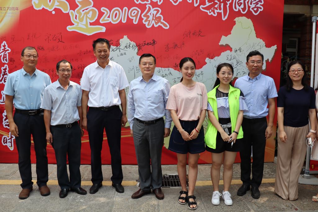 9月10日上午7时许,2019级新生注册活动正式拉开帷幕。注册点、行李点、引导处、材料发放处的老师、学生干部和志愿者各司其职,有序开展工作。注册期间,校长张荣、副校长杨斌分别带队亲临迎新点,对在烈日下坚守岗位的迎新工作者们致以亲切的问候,并与大家在签名墙前合影留念。
