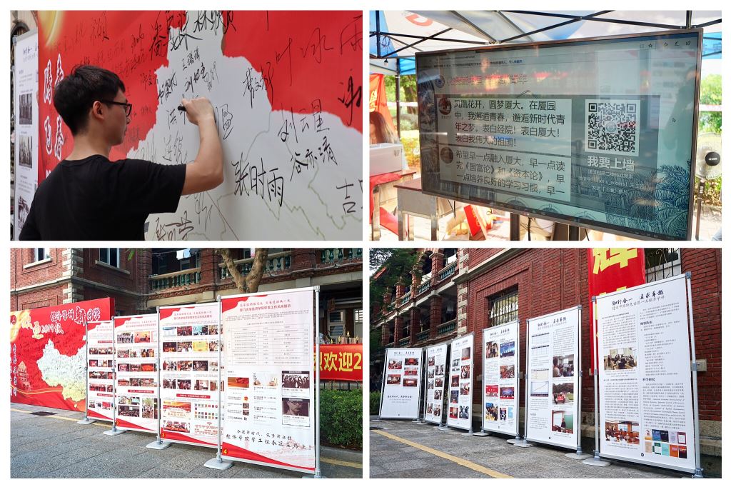 今年,学院迎新工作格外有声有色。迎新工作组推出了别出心裁的“厦一站,同行”活动,组织新生通过领取定制版校园书签,和同编码小伙伴一起打卡校园美景,赢取精美好礼。学院还制作了带有中国地图的大型签名展板,主题为“腾飞七十载,青春正当时”。新生们在展板上郑重签上名字并合影留念,用青春告白祖国和母校,以签名承载美好祝愿。