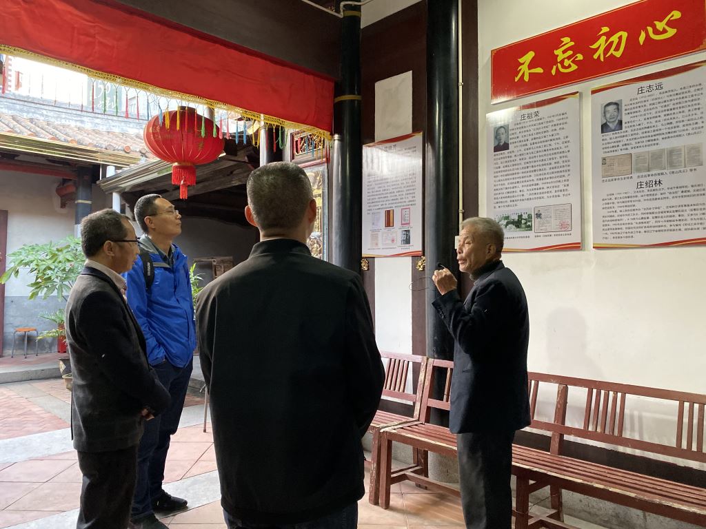 本次支部活动的最后一项行程是赴后楼革命老区基点村——埭港村,开展“不忘初心、牢记使命”主题教育现场教学,接受革命传统教育。1948年,中共闽浙赣边区党委城工部福州交通站的地下党员庄晚芳、林文学、庄祖荣由福州转移至山腰,在后楼成立“中共闽浙赣城工部山腰支部”,庄晚芳任支部书记。他们创办“正风实习班”,开展革命活动,组建城工队,支援惠安游击队活动,并成功策反山腰盐署、盐警起义。1949年8月18日,惠安县工委张海天等在山腰后楼庄晚芳家中举行山腰盐署、盐警大队起义接收仪式,宣布山腰解放,成为泉州市最早解放的地方。1983年,惠安县人民政府批准后楼村为“革命老区基点村”。支部党员参观了庄晚芳故居(后楼村起义接收地)、望海楼正风实习班革命遗址等,聆听老讲解员庄福星讲述庄晚芳等革命先辈的革命业绩和革命精神,并向革命先辈致以崇高敬意。