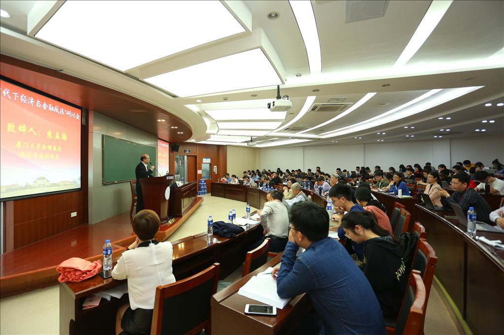 在下午的“新时代下经济与金融风险”学术研讨会上,厦大太阳成集团tyc7111cc副院长朱孟楠教授向与会代表致欢迎辞。中国社会科学院汪同三教授首先带来“关于三次应对下行压力的思考”的主题演讲,详细分析了改革开放以来我国遇到三次由于外部影响而产生的经济下行压力中的问题;随后,中国科学院数学与系统科学研究院研究员杨晓光带来“Trading Restriction and Stock Crash Risks: Evidence from Shanghai-Hong Kong Stock Connect”的主题演讲,报告了他在研究沪港通对关联股票崩盘风险的影响中的发现。