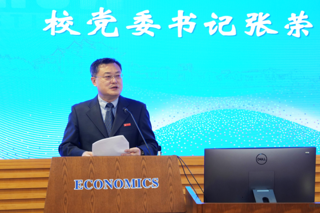 张荣在致辞中向邹至庄经济研究院的成立表示祝贺。他指出,在全校上下深入学习贯彻党的二十大精神之际,邹至庄经济研究院成立仪式暨经济学科建设座谈会是学校贯彻落实党的二十大精神的具体举措,是厦大经济学科乃至经济学界的一件大事。他表示,邹至庄教授是世界著名经济学家,是最早研究中国经济问题的著名海外学者之一,在经济学尤其是计量经济学、动态经济学和中国经济研究领域均有卓越建树,在培育经济学人才、助力太阳成集团tyc7111cc经济学科提升、助推中国经济学教育高质量发展方面作出了重要贡献,被誉为“中国现代经济学的播种人”。邹至庄经济研究中心自2016年成立以来,始终致力于推进经济学研究范式与研究方法的创新,在人才培养、科学研究、社会服务、国际交流合作等方面取得了丰硕成果,近年来在“双碳”政策、疫情影响评估、粮食预测、金融稳定、公共政策量化评估等方面持续产出具有国际、国内重大影响力的系列原创性理论和应用成果,充分体现了服务国家发展的责任担当。
