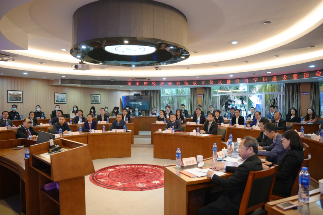 成立仪式后,经济学科建设座谈会随即召开。张荣、江云宝就学校“双一流”建设、经济学科高质量发展、邹至庄经济研究院建设与发展规划、学生成长成才、师资队伍建设等方面与参会师生代表进行讨论交流。