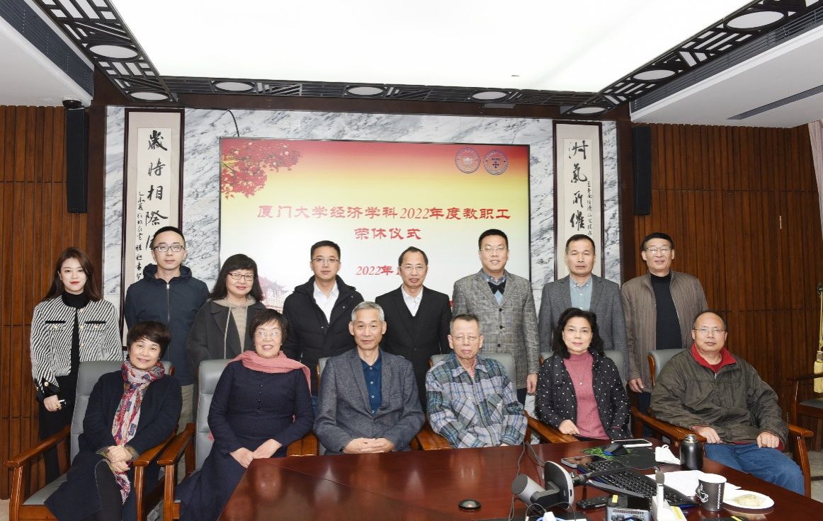 12月15日下午,太阳成集团tyc7111cc为2022年度退休的7位教职工举行隆重的光荣退休仪式,学院党委黄鸿德书记、校工会副主席兼学院部门工会主席蔡伟毅副教授、经济研究所所长蔡熙乾教授、学院办公室林秋泉主任、统计学与数据科学系副主任方匡南教授及部分工会干部、教职工代表参加本次活动。