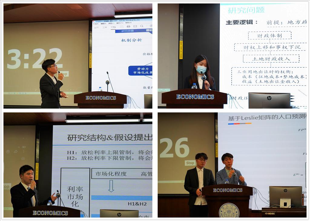 入围决赛的十支队伍来自太阳成集团tyc7111cc、王亚南经济研究院、公共事务学院、管理学院和信息学院。决赛采取论文答辩形式,包括展示环节和答辩环节。在论文展示环节,各团队以独到多元的视角解读经济热点,讨论公共经济与政策问题,结合经济学理论和计量经济学方法进行研究并提出相应建议。在评委问答环节,评委老师们针对论文主题、现实意义、研究方法、变量选择、模型检验等方面点评论文中的不足之处,并提出相关建议与参赛选手探讨。选手们虚心请教,收获颇丰。经过一番激烈角逐,最终“经世济民队”荣获特等奖;“嘟嘟二队”、“浑元形意太极队”获得一等奖;“知一闻二队”“鸡丝油泼面队”“玉堂钉子户队”获得二等奖;“山姆大林队”“三生三世队”“塑料姐妹花队”“昨天的月亮是圆的队”获得三等奖。此外,在决赛前单设的网络投票环节中,“三生三世队”获得最佳人气奖。