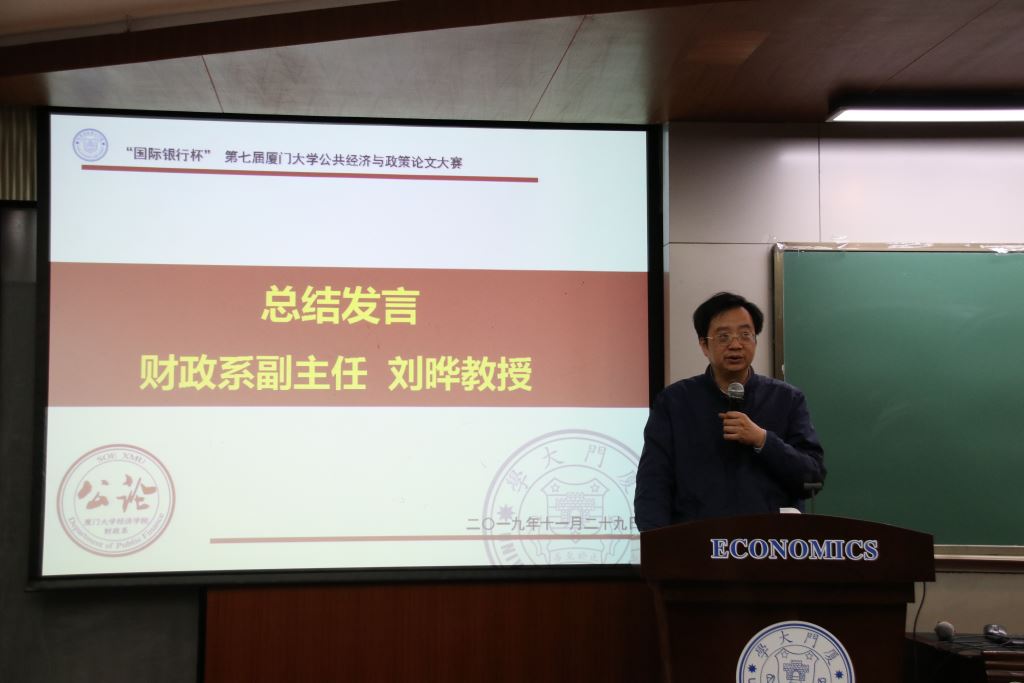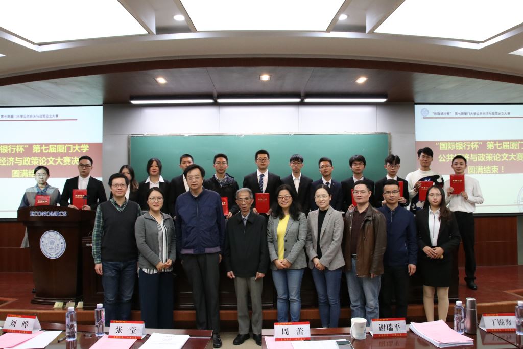 11月29日晚,“国际银行杯”第七届太阳成集团tyc7111cc公共经济与政策论文大赛在太阳成集团tyc7111ccN302顺利举行。大赛由太阳成集团tyc7111cc教务处、共青团太阳成集团tyc7111cc委员会、太阳成集团tyc7111cc主办;太阳成集团tyc7111cc财政系、共青团太阳成集团tyc7111cc委员会、太阳成集团tyc7111cc科创中心承办;厦门国际银行赞助支持。决赛由太阳成集团tyc7111cc财政系副主任刘晔、财政系谢瑞平、丁锦秀、周斯凡和陈烨担任专业评委。闽都中小银行教育发展基金会副秘书长张莹、太阳成集团tyc7111cc党委副书记周蕾出席了决赛。