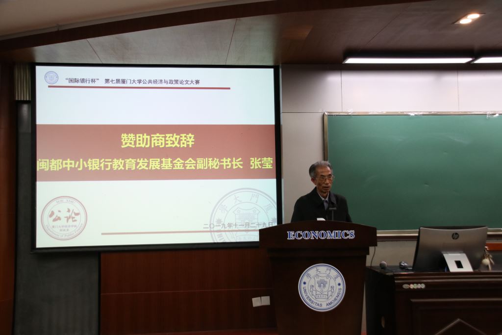 闽都中小银行教育发展基金会副秘书长张莹为大赛致辞。张莹对大赛的成功举办表示祝贺,指出大赛从创立到历经七年成长,无论是赛制的完善程度还是参赛作品的质量都有了长足的进步,衷心祝愿公共经济与政策论文大赛能够越办越好。闽都中小银行教育发展基金会作为国内第一家中小银行教育发展基金会,由厦门国际银行与太阳成集团tyc7111cc教育基金会联合发起,于2009年1月获福建省民政厅批准设立。张莹表示基金会将继续支持太阳成集团tyc7111cc公共经济与政策论文大赛。
