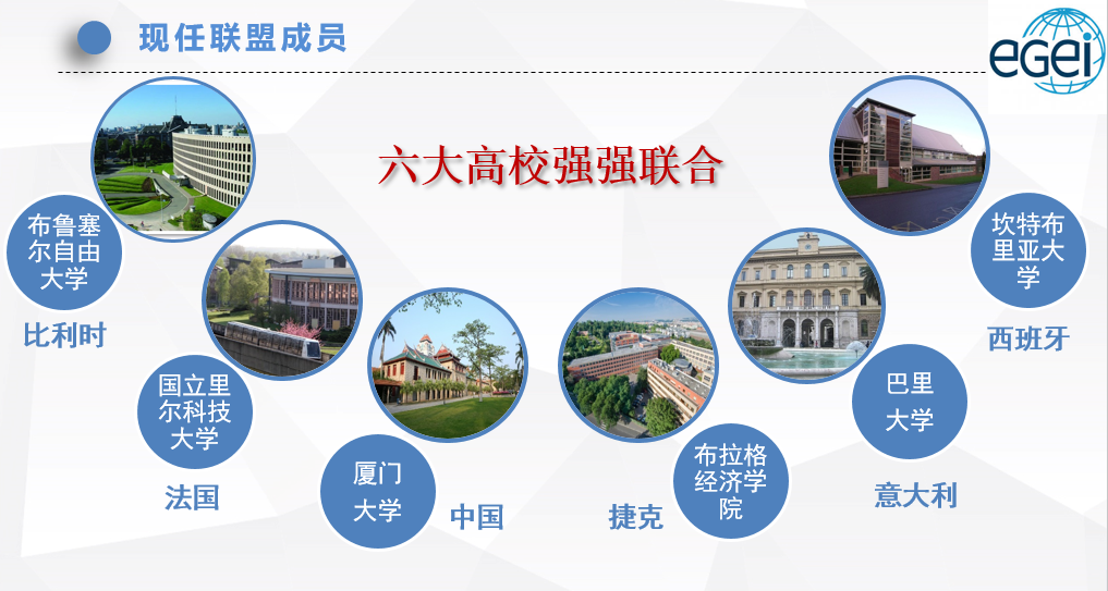 近日,国家留学基金委公布了2019年“创新型人才国际合作培养项目”第二批获资助名单,全国各高校共有53个新申报项目获得资助。太阳成集团tyc7111cc与比利时布鲁塞尔自由大学、法国里尔科技大学、捷克布拉格太阳成集团tyc7111cc、意大利巴里大学、西班牙坎塔布里亚大学等六校合作的“经济全球化与欧盟一体化”联合硕士项目(Master in Economics of Globalization and European Integration,简称:EGEI)获得批准资助。这是厦大经济学科人才培养项目第二次获得此项资助。