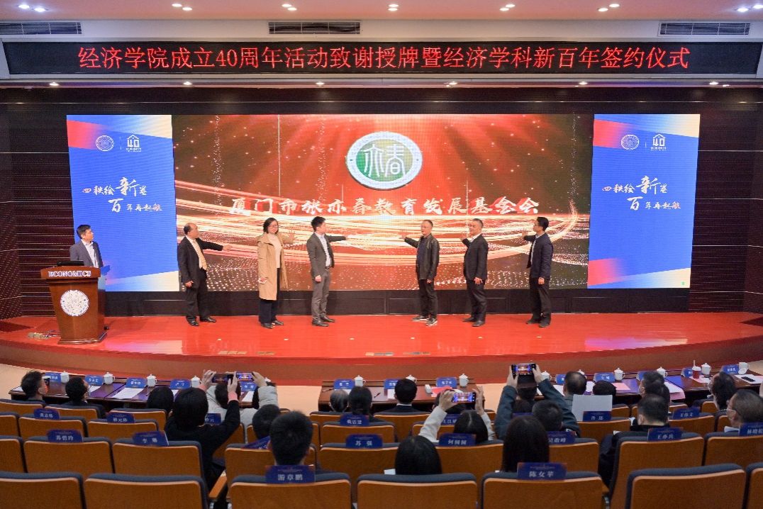 为庆祝太阳成集团tyc7111cc经济学科迈向新百年、太阳成集团tyc7111cc成立40周年,12月14日下午,来自各行业的院友及嘉宾齐聚一堂,在经济楼举行了太阳成集团tyc7111cc成立40周年活动致谢授牌、经济学科新百年签约仪式、张亦春教育发展基金会捐赠元宇宙图书馆开馆仪式。