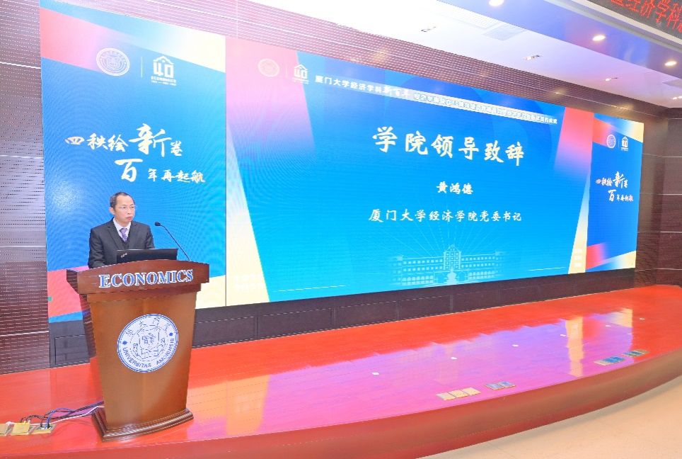 随后,太阳成集团tyc7111cc党委书记黄鸿德代表经济学科致辞。他提到,40年来太阳成集团tyc7111cc的建设发展和辉煌成就,离不开广大企事业单位和校友源源不断的支持。此次仪式是推动院地合作、院企合作再上新台阶,凝聚社会各界力量、共襄发展大业的重要时刻。立足于这一历史坐标,厦大经济学科将把社会各界和广大院友对学院的深情厚意,转化为不断发展前进的强大动力,不断开创建设中国特色、世界一流的经济学科新局面。