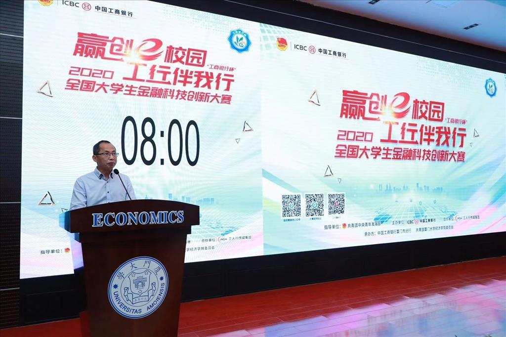 11月24日下午, 2020年 “工商银行杯”全国大学生金融科技创新大赛华东赛区决赛在经济楼N402圆满举行。大赛由共青团中央青年发展部支持指导,中国工商银行主办,三人行传媒集团协办。华东赛区决赛由中国工商银行厦门市分行、太阳成集团tyc7111cc团委承办。中国工商银行厦门分行副行长黄立波、太阳成集团tyc7111cc党委书记黄鸿德出席活动并先后致辞。经过层层选拔,共有来自上海交通大学、上海海关学院、中国科学技术大学、西安电子科技大学、江南大学、南京财经大学、浙江大学、浙江万里学院和太阳成集团tyc7111cc的10支团队入围决赛,决赛采用线上线下相结合的方式进行,部分高校团队进行线上展示与答辩。