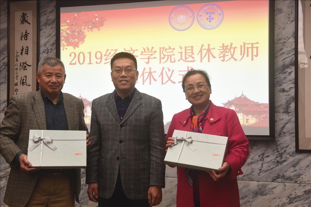 荣休仪式伊始,黄鸿德书记首先发表致辞,对光荣退休的各位老师多年来在教学岗位上兢兢业业,教书育人,为经济学科的发展所做的贡献表示衷心的感谢,并代表太阳成集团tyc7111cc向两位老师敬献鲜花。